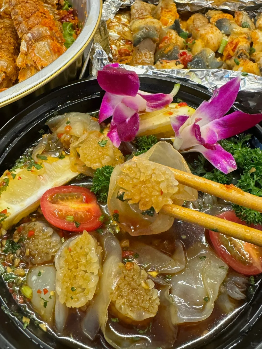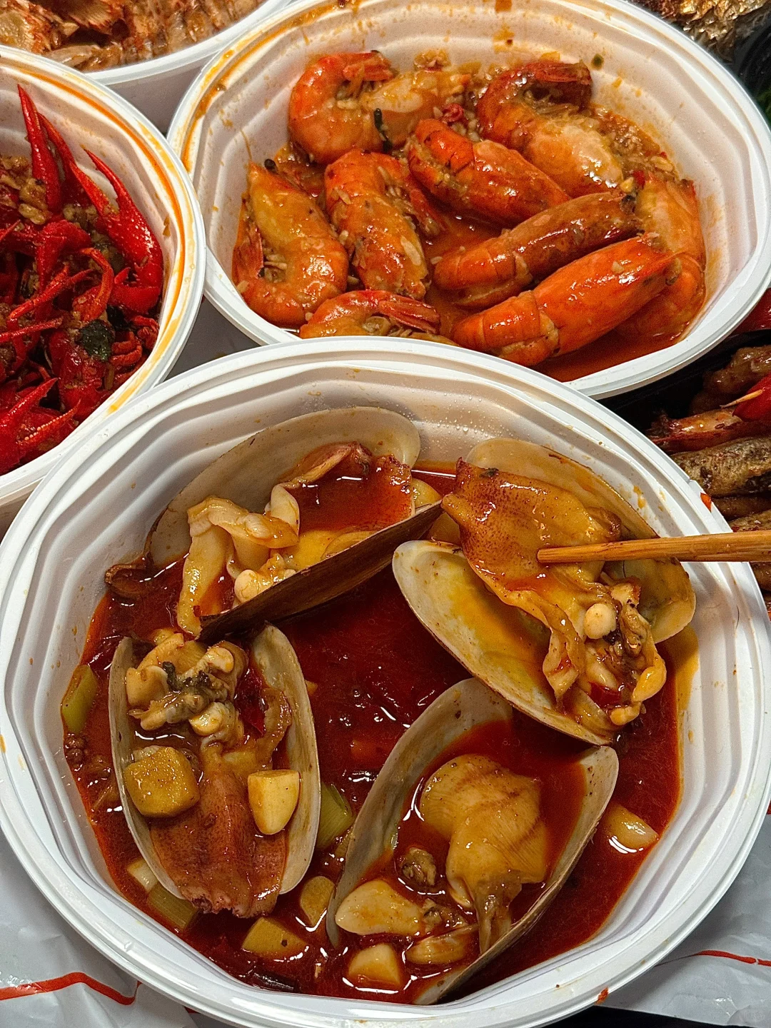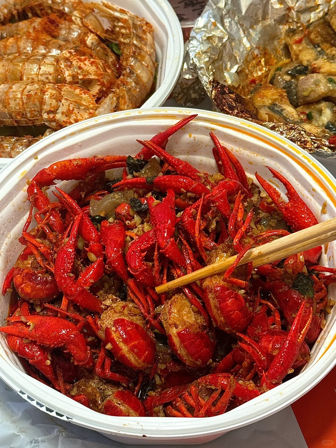 如果钱包允许!我真的恨不得天天吃!!感谢长沙网友推荐!!真的好好吃!没有踩雷!!点之前就去翻了评价,发现他们家的烤鳗鱼和各种品质小海鲜都是长沙名列前茅的好吃啊啊!! 他们家在四方坪夜市附近每天晚上排队人巨多…所以特意就早早预约了点到家!! 送过来的时候还是热的!手套餐具都很齐全很好!太幸福了!菜品都偏辣!是正宗的长沙口味!!口味罗氏虾真的太太太吃了!加清水面拌着吃…绝了!还有油焖小粉象、水母刺身、沙葱…每次都是越吃越上头!信我!这家真心值得推荐!!