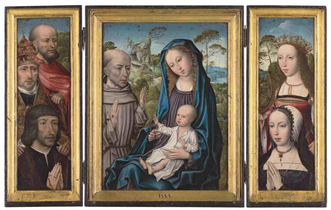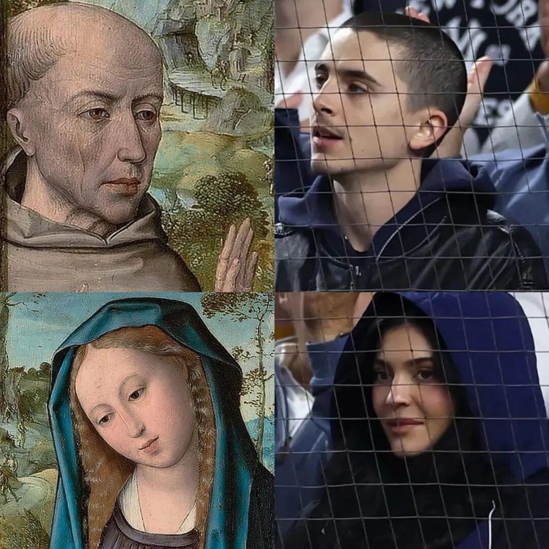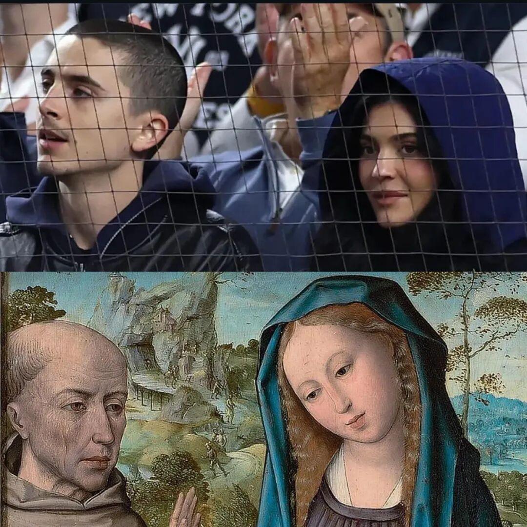 最近,好莱坞男星甜茶Timothée Chalamet与女友Kylie Jenner一同现身MLB洋基队主场观赏与蓝鸟的赛事。 我觉得让我想到了一个油画作品。在15世纪末至16世纪初的布鲁塞尔创作了一幅震撼人心的三联画(Triptych)——《圣抹大拉的玛利亚传奇》(The Master of the Legend of Saint Mary Magdalene)。 而在这幅鸿篇巨制中,有一幅名为《圣母子与圣方济各》 (The Virgin and Child with Saint Francis of Assisi)的画作,中间的核心化作。 有点像这次甜茶和 Kylie 的合影构图。 甜茶依然是我心中的那个油画少年。