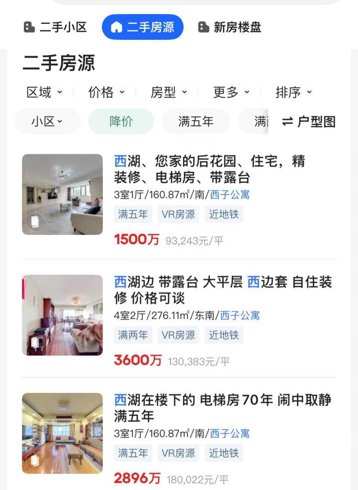 目前,贝壳平台上西子公寓挂牌房源有3套,单价在9.3万–18万元之间,相比之下,本次500万元的起拍价堪称“地板价”。