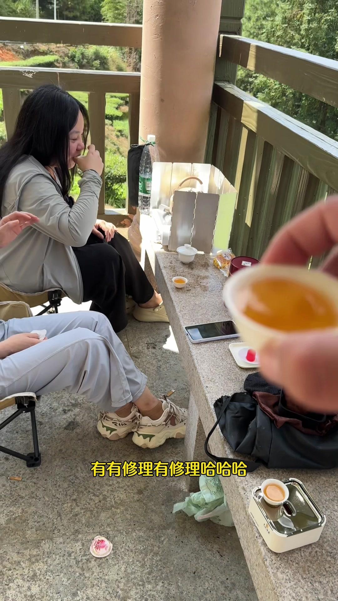 🌾揭西桐树坪秋收啦,可惜稻谷已收割,不过意外遇到两位美女请喝茶,太惊喜~ 📍身后就是桐树坪,稻田虽已收割,但这里的风景依旧很治愈。 🍵美女泡的茶很香,边喝边聊天,感觉融入了当地生活。