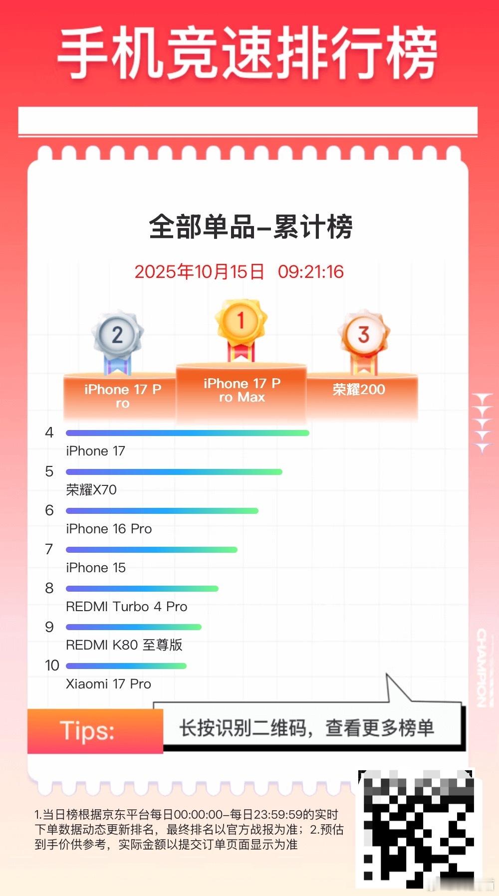 10月9日到现在,京东手机累计销量