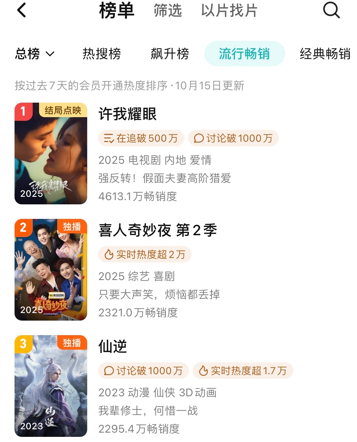 10.15 许我耀眼拉新 年榜4124.2 保持第三位 比昨日+29 周榜4613.1保持一位。
