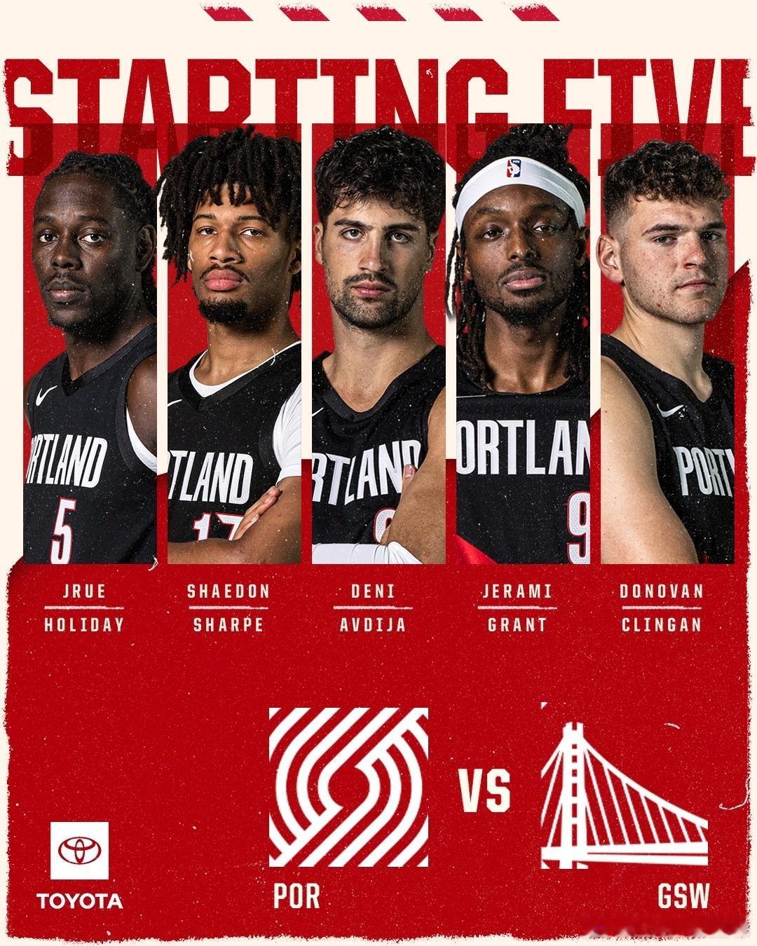 开拓者新的首发阵容:霍勒迪,夏普,阿夫迪亚,格兰特,克林根。杨瀚森再战勇士,替补