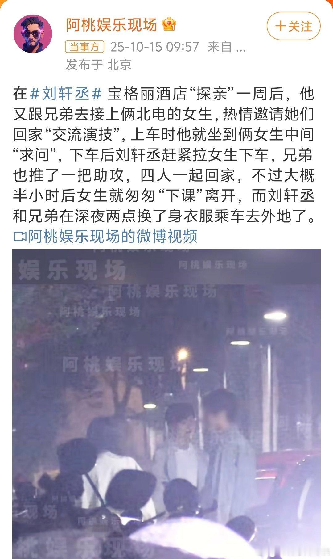 曝刘轩丞拉女生下车 狗仔今天又曝刘轩丞拉女生下车,结果拉的这个女生是刘轩丞好朋友,从大学艺考期间就一起玩的朋友,艺考四人组。 ​​​