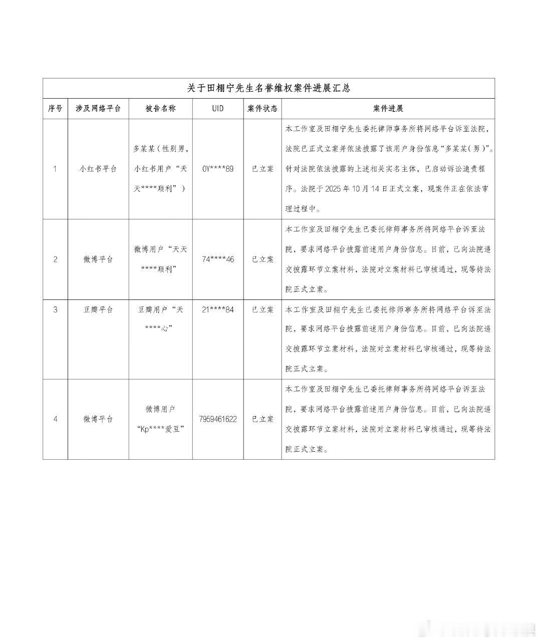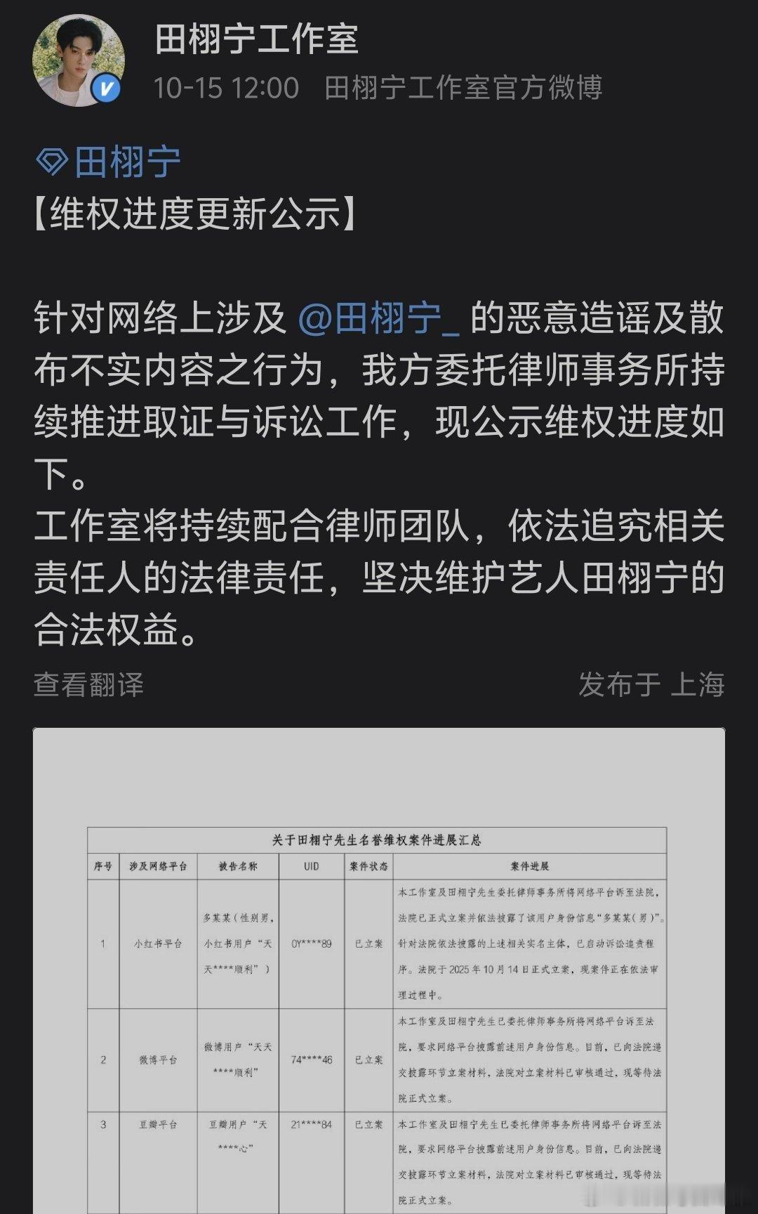 田栩宁工作室发维权进展,全平台告黑!支持维权。 田栩宁工作室更新维权进度 ​​​