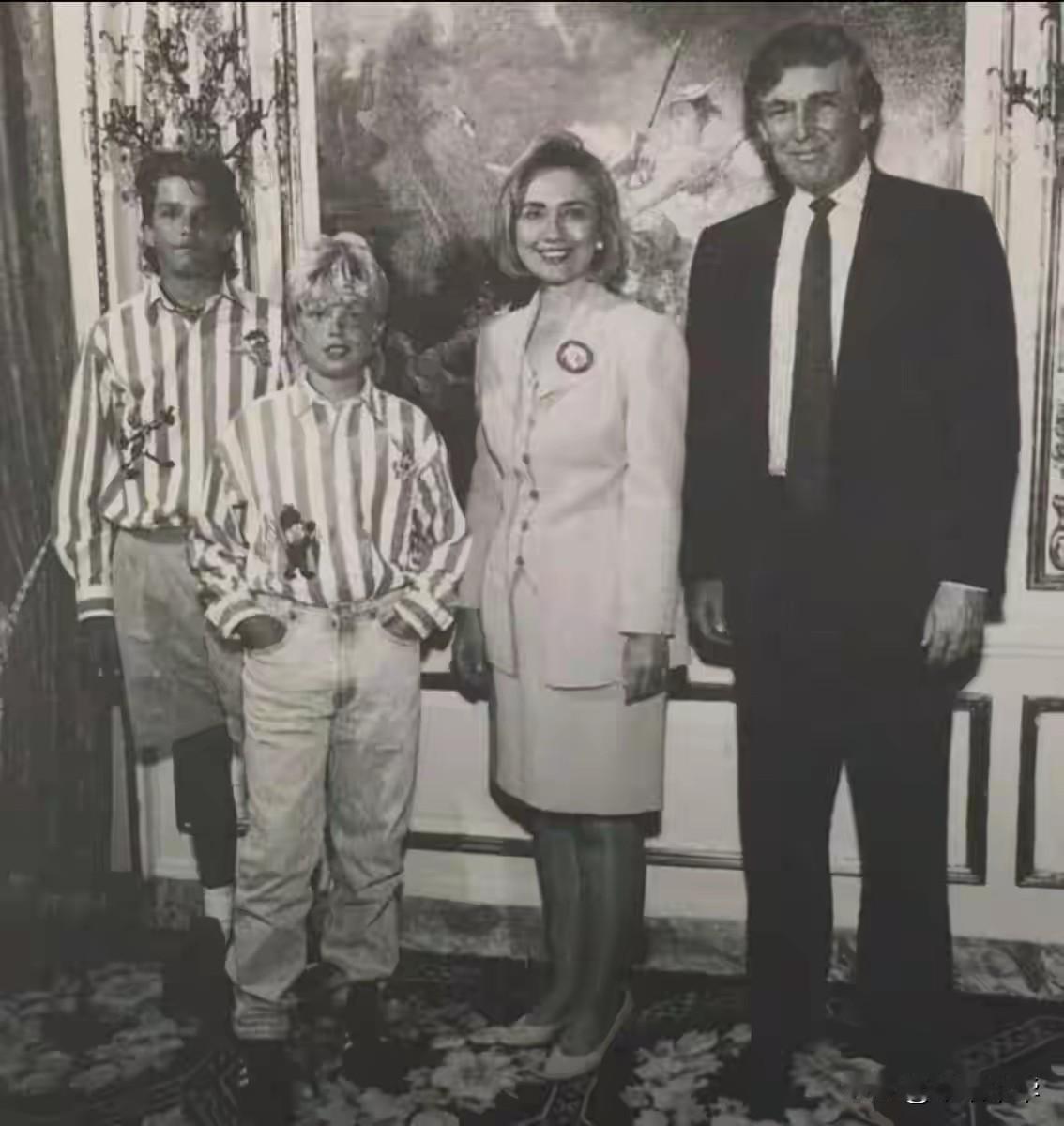 “好饭不怕晚”,特朗普与克林顿是同龄人,克林顿早在1992年即当选总统,这张图片是当时的第一夫人在1996年邀请特朗普进入白宫,特朗普可能在这时已心中暗想早晚有一天我会成为这里的主人,果然在20多年后的2020年以70多岁的年龄入主白宫,有志不在年高。