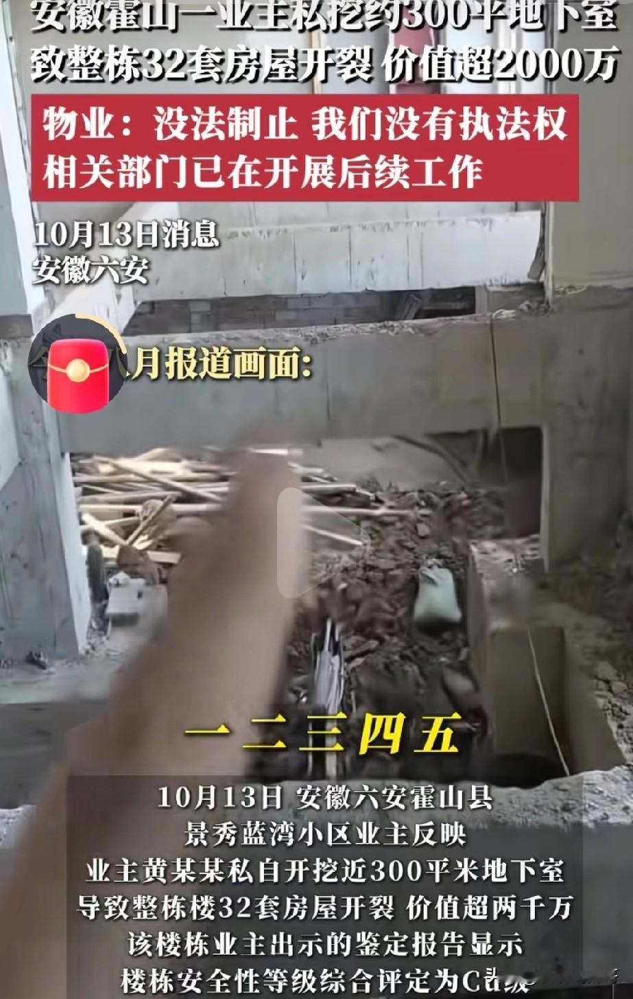 我有种预感,安徽霍山县恐怕要变天了因为偷挖地下室最大的影响,不是楼上的住户,也