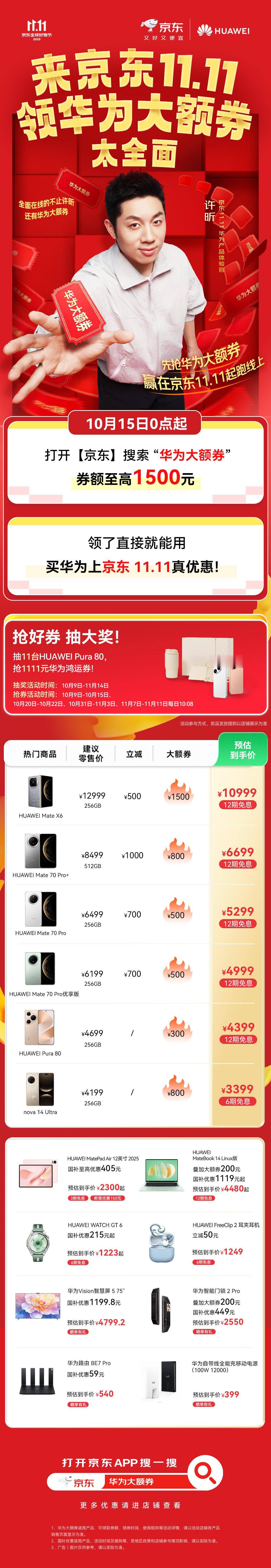 我能想到最幸福的事,就是跟着乒乓艺术家许昕一起来薅羊毛~想要的华为好物这次终于可以在京东“打包”带回家咯,这一次属于我的一定要全部拿下!京东双11领华为大额券换机超划算 打开京东APP,搜索“华为大额券”即可领券,券额至高可达1500元!华为双11智慧享好礼 现在就进华为京东自营旗舰店,领券购机简单又划算,还可进店参与抢好券、抽大奖的系列活动!还等啥?速戳【】行动啦!华为大额券 京东双11又好又便宜