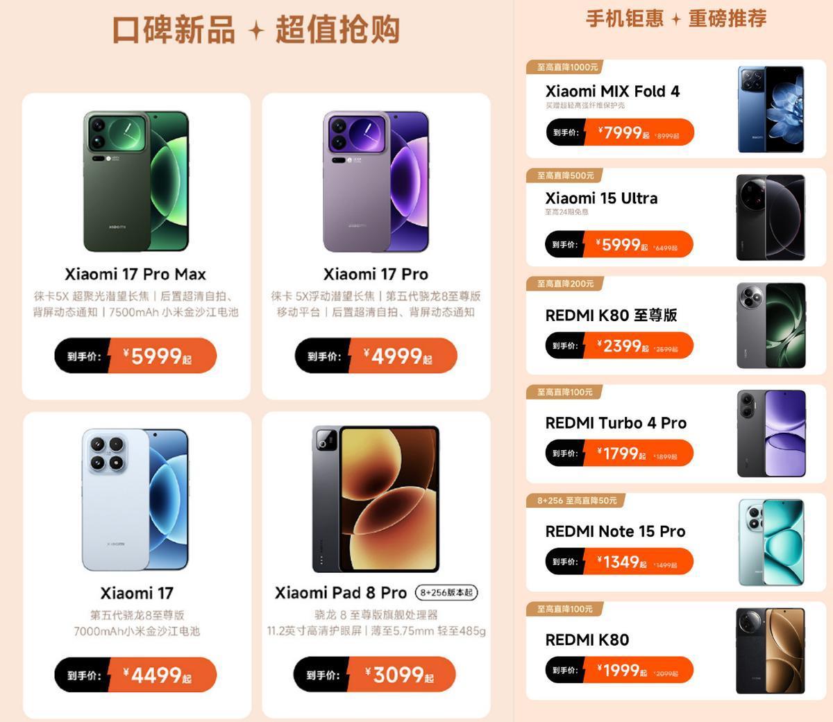 话确实难听,不过友商再怎么装睡都没用 小米17系列,已经打醒了多少人 这一代产品的实力有目共睹,目前激活量已经破百万,而且数据还在快速上升。不出意外,继第二季度国内市场份额第一,小米在小米17系列的帮助下大概率第三季度也是国内第一。更重要的是,小米已经全面开启了今年的双十一狂欢 简单说几款热门机型,小米MIX Fold 4直降1000、红米K80全版本直降100、红米K80至尊版直降200。产品卖得好也就算了,小米还拿出真金白银来补贴消费者,真的是不给友商留活路。 当然了,小米杂货铺的其他产品也没错过这次活动,米家中央空调Pro5匹一拖四超一级能效到手19999、米家冰箱Pro微冰鲜双系统法式平嵌560L到手6399、米家三区洗衣机Pro 滚筒10kg到手3999 怎么说呢,不管某些人怎么带节奏,小米的产品力和性价比摆在这里。更重要的是,11月份小米服务“服务周”活动也会全面升级,99款机型可以低价换电池,空调挂机、洗衣机、油烟机清洁服务一口价99元,就问你们服不服。