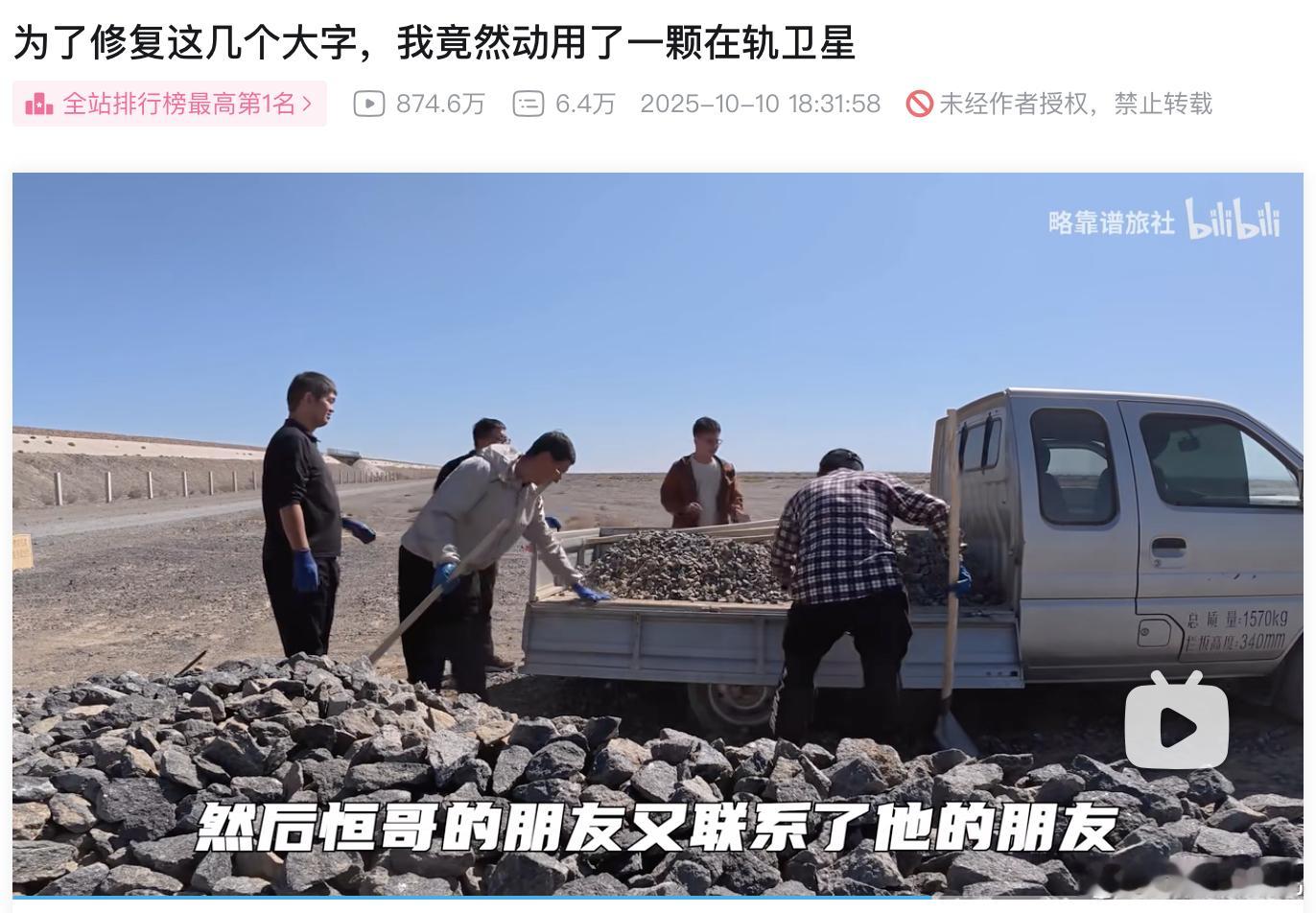 人民网评修复戈壁滩大字何以引人共鸣从四处寻觅相似黑砂石,到动用27车砂石修复,