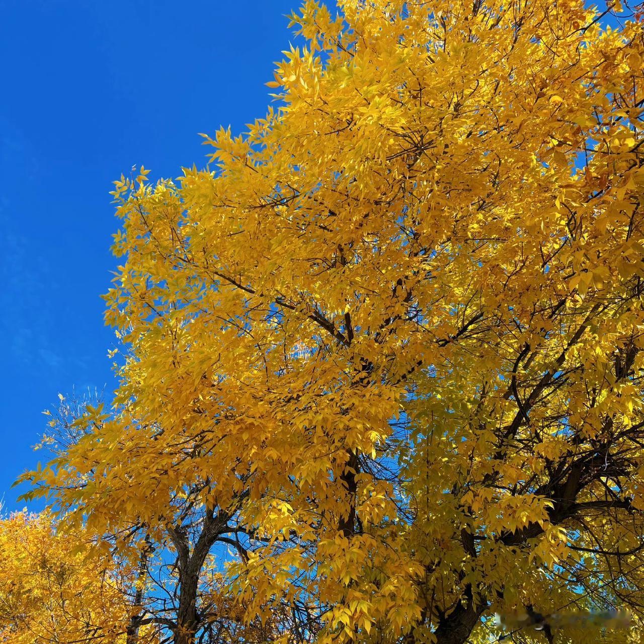 蓝天作幕,金叶为笔,深秋把树酿成了一罐蜜,每一片叶子都在阳光下写着关于季节的诗。