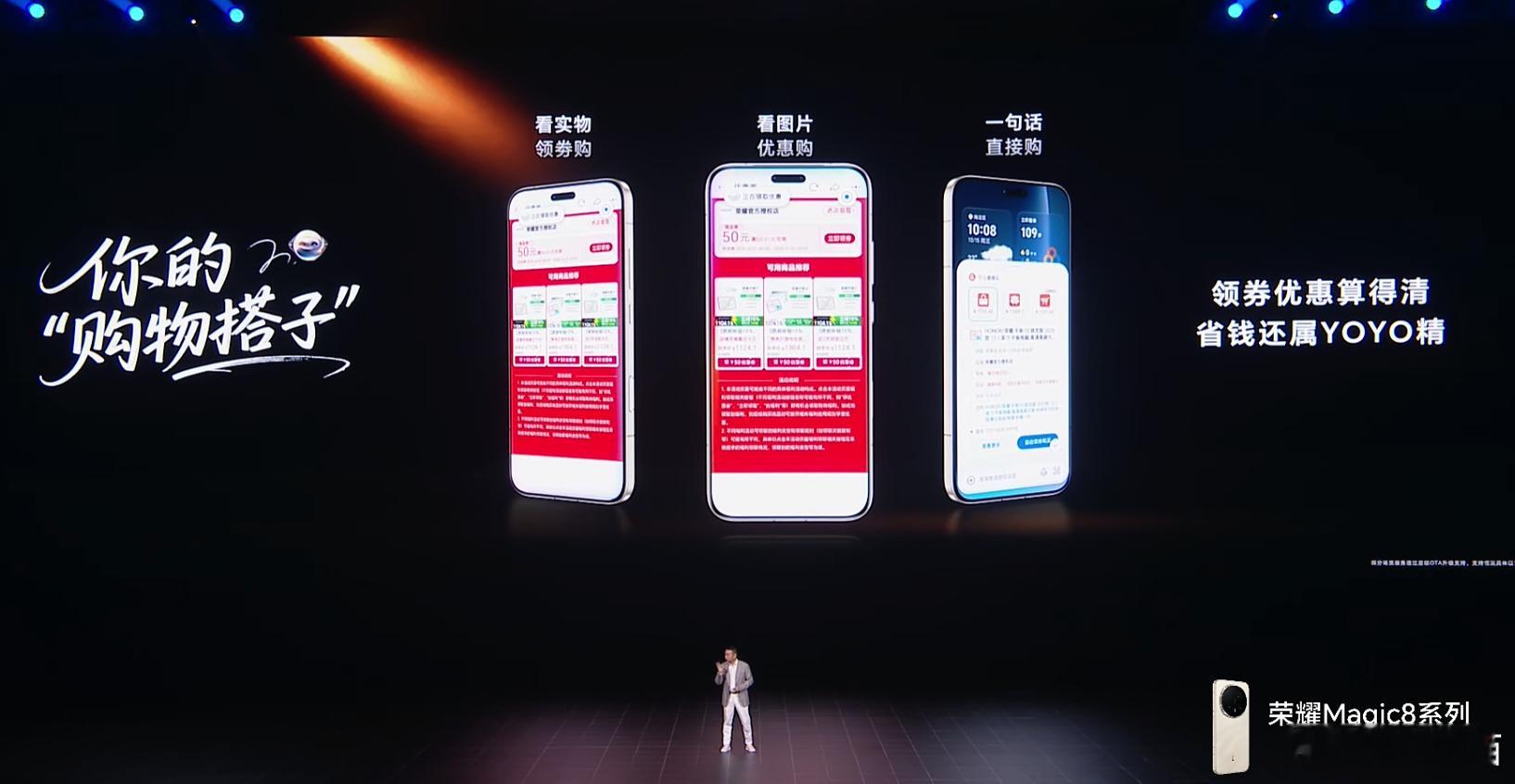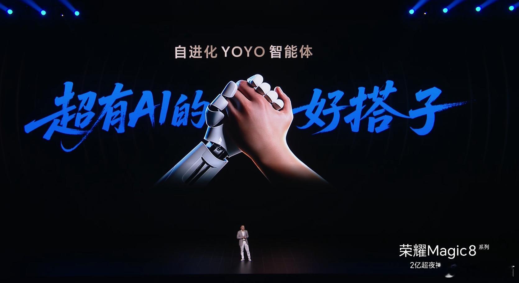 荣耀Magic8每天都在自进化荣耀发布会进行中,荣耀Magic8,荣耀Magic8 Pro来了!荣耀官方表示,这是具备“自进化”能力的手机,是AI Phone,首搭MagicOS 10,YOYO智慧体验不断增长,支持全平台比价和领优惠券,找美食等等,让AI落地到生活中,全新AI智能体YOYO定义为“超有 AI 的好搭子”。[写作业]