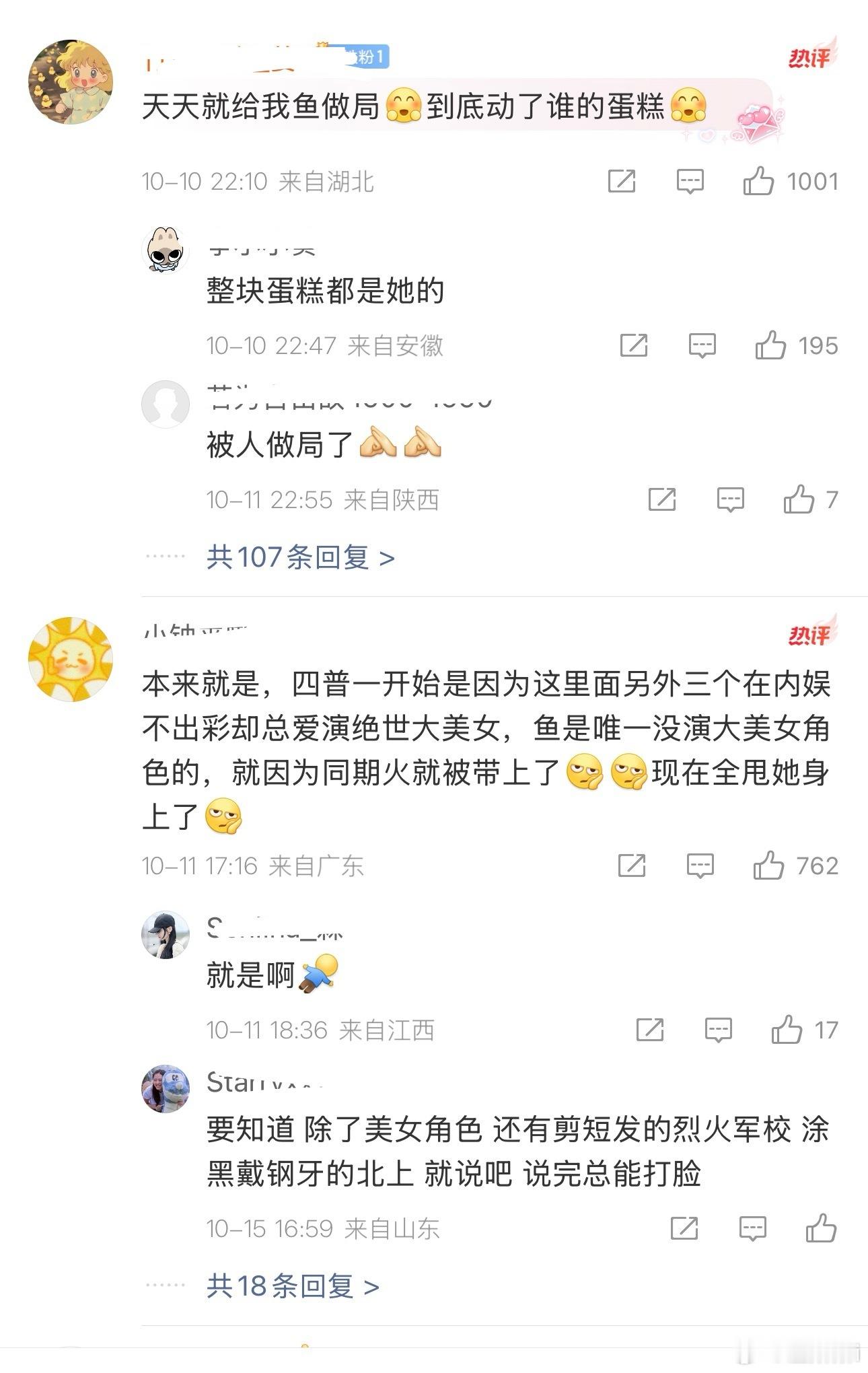鱼丝表示虞书欣被说普女是被做局了,说突然传出来一张以前的生图怼脸照就被打成普女了,还有早期的一些综艺路透也都是为了给她贴普女标签,说她根本没演过大美女不应该被说普女,还在评论区怀疑zhy和zls搞得,太搞笑了[泪奔][泪奔][泪奔](提示一下卧鱼先被叫普女后又的四普