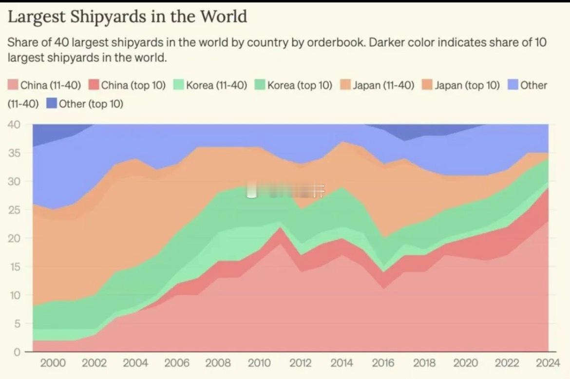IFP:在持续的大规模投资及政府补贴支持下,中国造船业的全球市场控制力进一步强化,2024年其完工量已占全球总吨位的57%,并且持有全球59%的未完成订单。产业集中度的提升亦表现为在全球最大的20家船厂中,中国占据了14个席位,巩固了其自2017年以来作为全球最大造船国的地位。