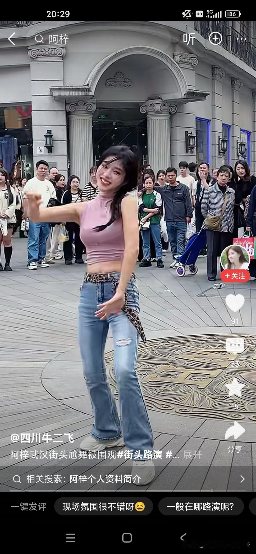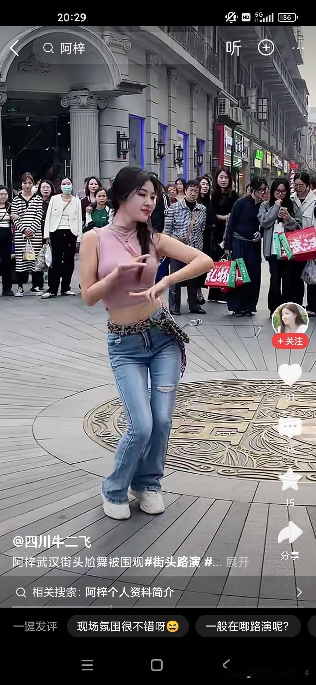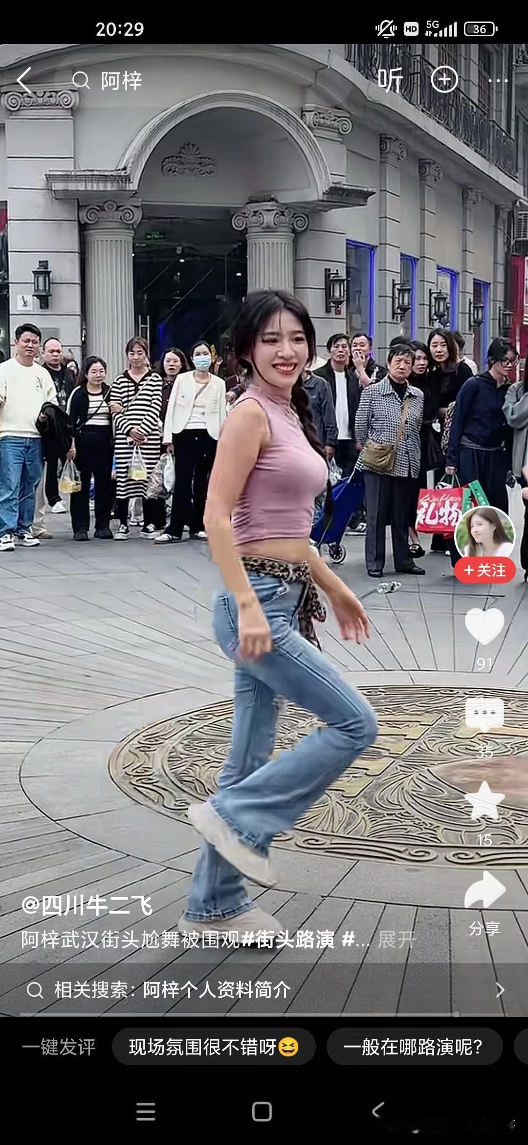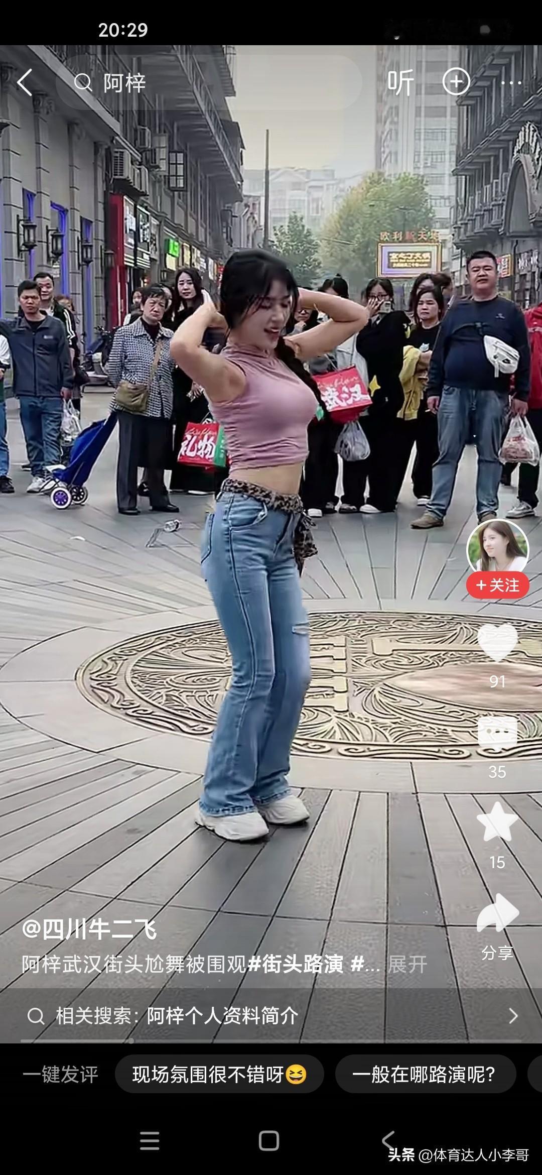 我们很多人会嘲笑这个小女孩阿紫,说她整天在镜头面前搔首弄姿,跳各种妖艳的舞蹈,我们很多人看不起她,觉得她完全是败坏风俗,败坏了镜头前的青少年,但是很多人爱看,不仅是镜头前的青少年,周围的男女老少也在围观,大家也不要嘲笑人家,人家是依靠自己的劳动去赚钱的,她又没有出卖色相也就是跳个舞蹈而已,每次在这个镜头面前的话,强装言笑,人家也是不容易的,而且当有老太太问她将来想找什么样的对象的时候,她说要去征求她爸的意见,又问她爸来做什么是做什么工作,她说是保安,还是比较真实的一个女孩子!