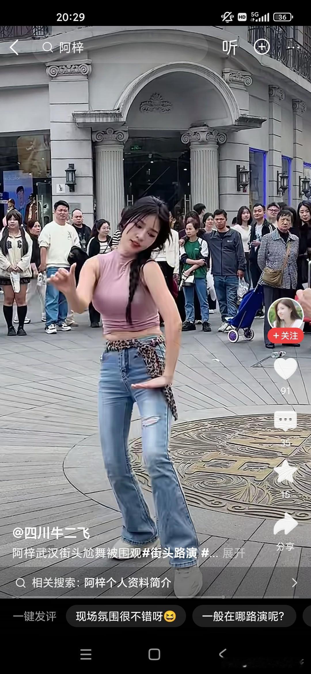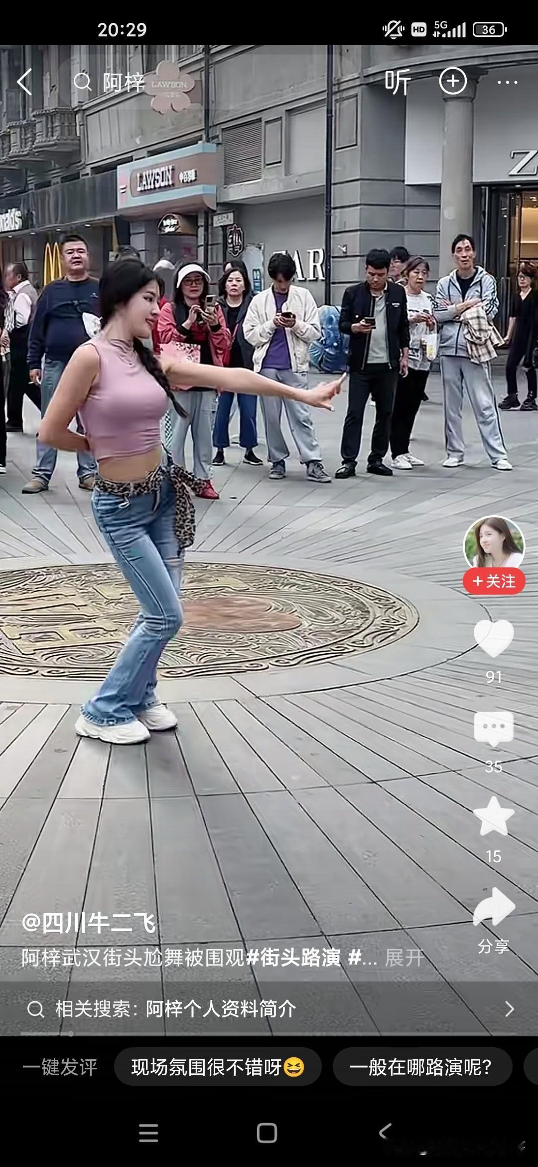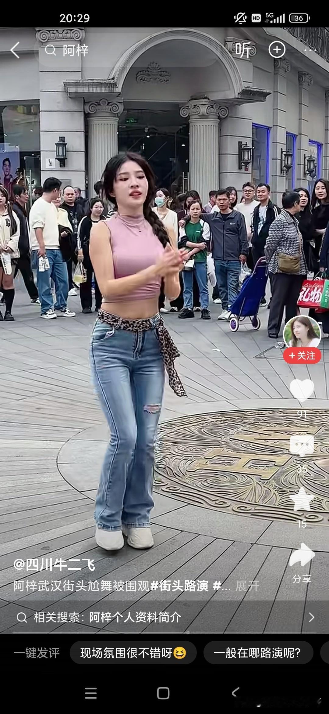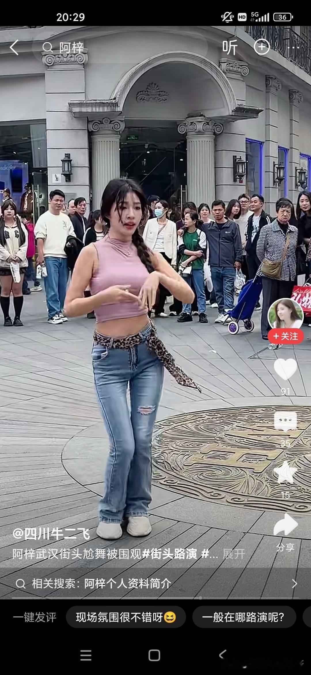 我们很多人会嘲笑这个小女孩阿紫,说她整天在镜头面前搔首弄姿,跳各种妖艳的舞蹈,我们很多人看不起她,觉得她完全是败坏风俗,败坏了镜头前的青少年,但是很多人爱看,不仅是镜头前的青少年,周围的男女老少也在围观,大家也不要嘲笑人家,人家是依靠自己的劳动去赚钱的,她又没有出卖色相也就是跳个舞蹈而已,每次在这个镜头面前的话,强装言笑,人家也是不容易的,而且当有老太太问她将来想找什么样的对象的时候,她说要去征求她爸的意见,又问她爸来做什么是做什么工作,她说是保安,还是比较真实的一个女孩子!
