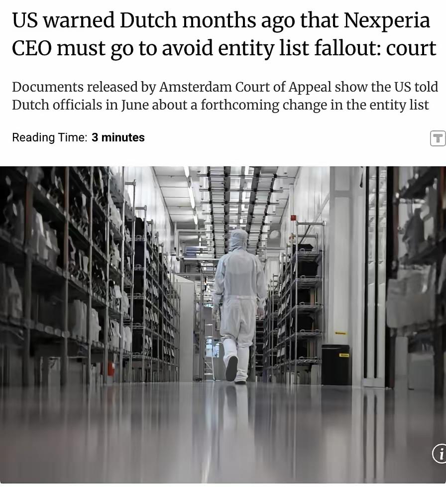 中国反击荷兰一出手就是杀招。荷兰有点好玩,感觉他们制定政策这帮人是学过中文的,但是没有学好。 他们说是基于安世半导体“可能会对荷兰和欧洲经济安全构成威胁”,按理说,他们发现了这个问题就应该想办法去防范,但是现在他们可好,使出了一招毁天灭地自杀回旋镖。 中文语境教育我们勇敢是没有困难要上,有了困难排除困难也要上。 他们学成了没有困难制造困难也要上。 现在好了,挨一大比兜,心子把把都舒服了。 顺便说一句,可能是他们没有意识到真正的威胁是和美国走得太近,美国是有事先割盟友,而他们不长记性。 这话真是说到点子上了,荷兰这波操作把“自作聪明”演成了“自讨苦吃”。嘴上喊着“经济安全”,干的却是砸自己饭碗的事——安世半导体2023年营收32亿欧元,在荷兰本土创造了超2000个就业岗位,哪点看着像“威胁”?法庭文件早把底裤扒光了,所谓“安全隐患”根本站不住脚,翻来覆去提了近20次的美国“50%规则”才是真因。说白了,就是没按美方要求换掉中国籍CEO,才招来这顿“整治”。 更可笑的是荷兰那套“巧合论”。美国9月29日刚升级“穿透性规则”,把持股门槛降到25%,荷兰第二天就冻结安世全球30家子公司资产,这衔接比无缝钢管还紧密。经济事务部发言人急着喊“美国没参与”,结果24小时后就被法庭文件打脸——早在6月,美国官员就和荷兰外交部碰过头,明着要“换掉中国籍CEO”才给豁免资格。这哪是“自主决策”,分明是照着美国剧本念台词。 他们大概真没搞懂“自杀回旋镖”的威力。安世半导体广东工厂是全球供应链关键一环,2022年刚投30亿扩建,中方一限制出口,全球车规级功率芯片供应立马卡壳。更要命的是阿斯麦,这荷兰“摇钱树”2024年在华营收占比高达36.1%,可造光刻机的钕、镝等稀土材料全靠中国供应,咱们把分离提纯技术一管制,阿斯麦直接喊交付要延迟数周。之前跟着美国断供的底气,碰到稀土这张牌瞬间没了踪影。 最讽刺的是荷兰想当“骑墙派”的心思。一边跟着美国扩大光刻机禁运,2023年禁EUV,去年又加禁大部分DUV,把路越走越窄;一边又舍不得中国市场的红利,30多家荷兰半导体企业联名写信求政府扶持,怕海外业务崩了。这种“既想啃中国饭碗,又想砸中国锅”的心态,本就不可能长久。阿斯麦都预警2026年中国市场销售额要回落了,荷兰还在硬撑。 美国的“割盟友”套路又不是第一次上演,荷兰偏要往火坑里跳。当年法国阿尔斯通、日本东芝的教训还不够深刻?现在倒好,主动把自家半导体产业绑上美国战车,转头就被中方精准反制。连荷兰网友都在红迪论坛吐槽“国际声誉全毁了”,可见明白人早就看清了局势。 这记“大比兜”其实打得很及时。不是要跟谁过不去,而是得让某些国家明白,市场经济不是喊口号,国际规则不能当摆设。安世半导体是闻泰科技砸337亿、花887天才拿下的企业,合法合规经营这么多年,凭什么被无端剥夺控制权?真要论“威胁”,跟着美国搞科技封锁、破坏全球供应链,才是对经济安全最大的威胁。 荷兰要是真学过中文,该好好补补“唇亡齿寒”“见利忘义”这两个词。抱着美国大腿或许能得点短期好处,但丢了中国市场这个长期基本盘,砸了本国企业的饭碗,最后只会落个“竹篮打水一场空”的结局。这回旋镖既然扔出去了,就总得有人接住,不是吗?