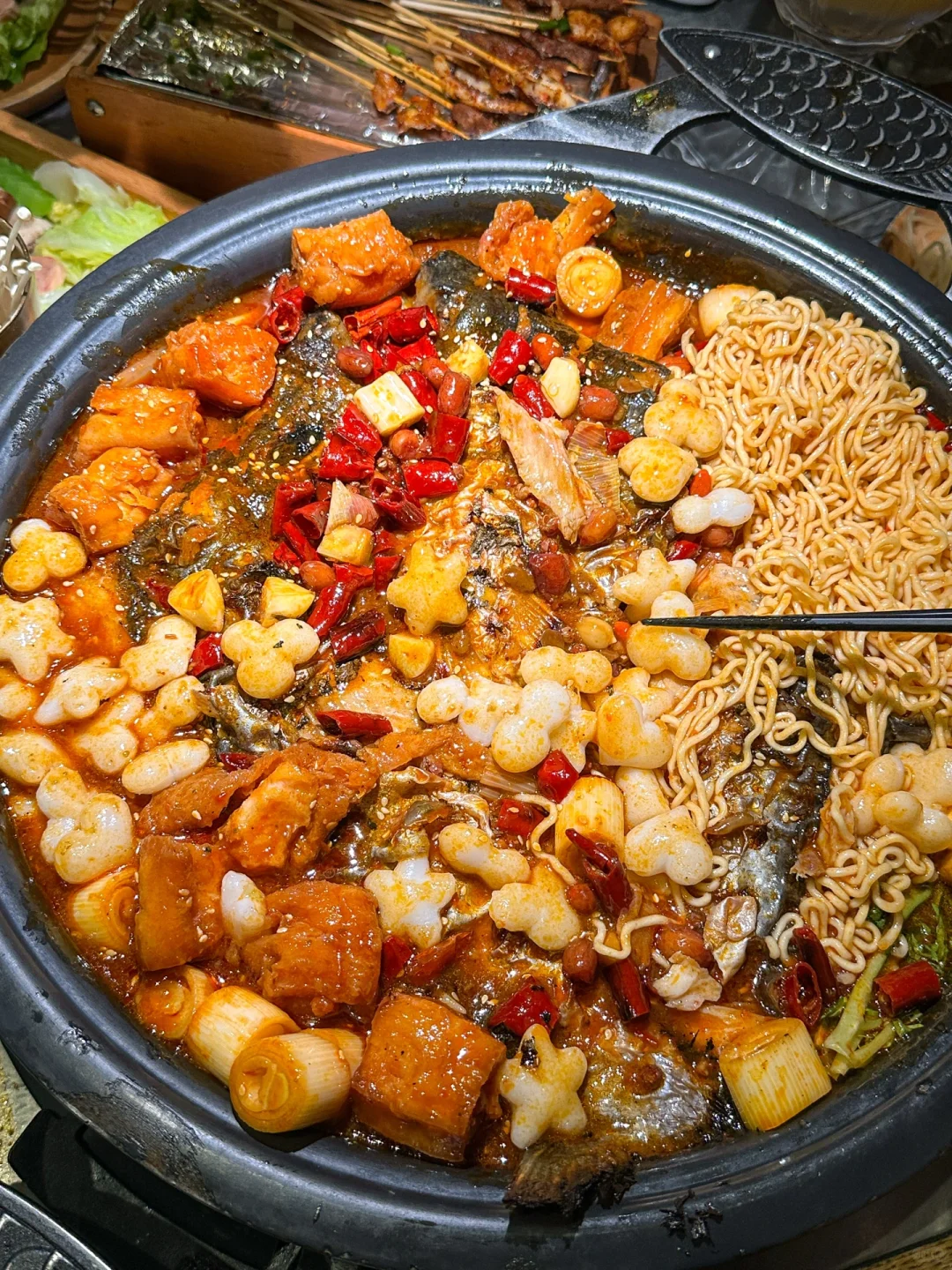 不是网红店!和朋友种草这家店(探鱼)好久了!特意早早预约来吃!!果然好好吃,特别是油条虾滑让人惊艳住了,烤鱼品质很不错,配菜也丰富~喜欢这口的真的要去试试啊啊,不会失望😭… 我们点了满满一桌a下来才人均五六十💰服务也很好!!无论是烤鱼还是饮品烧烤小吃都没踩雷欸,吃的很满意!