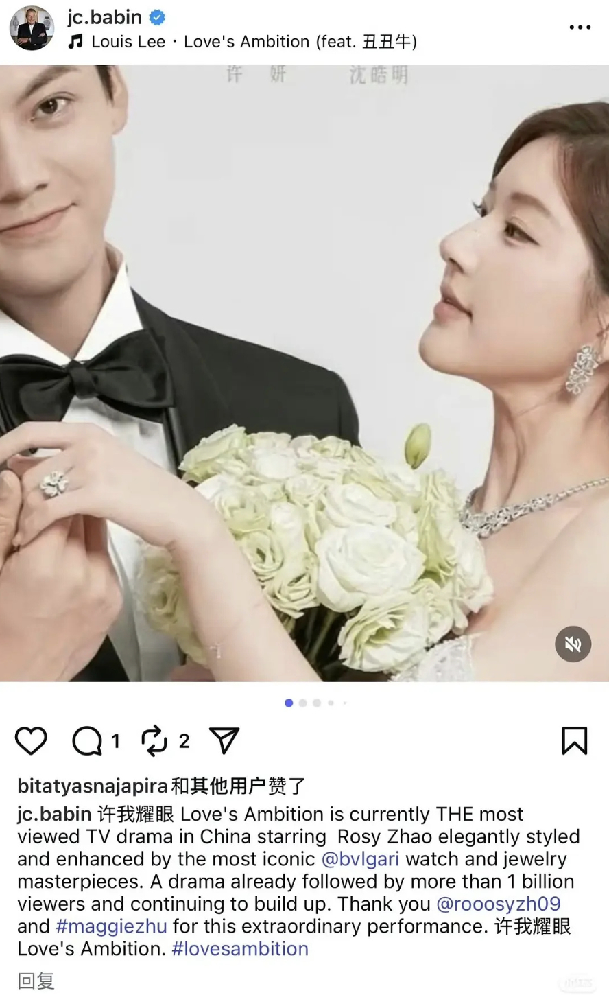 宝格丽总裁发文感谢赵露思,称许我耀眼是中国中国最火爆的电视剧。