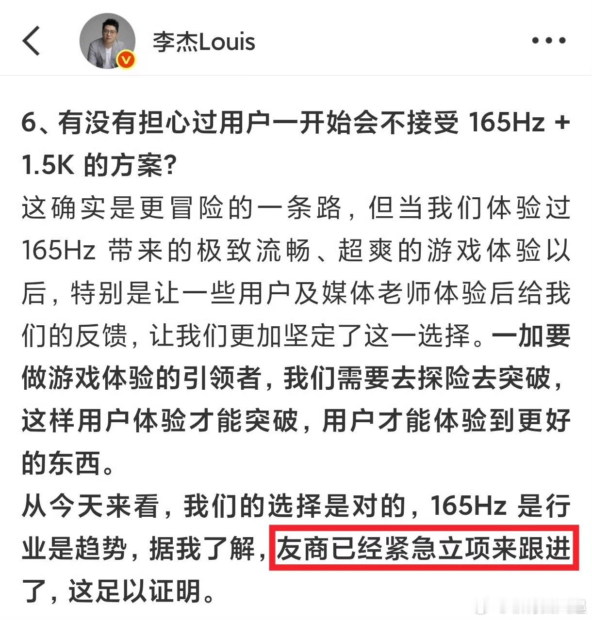 你们猜哪位友商已经立项跟进一加15的165Hz超高刷屏了[思考]