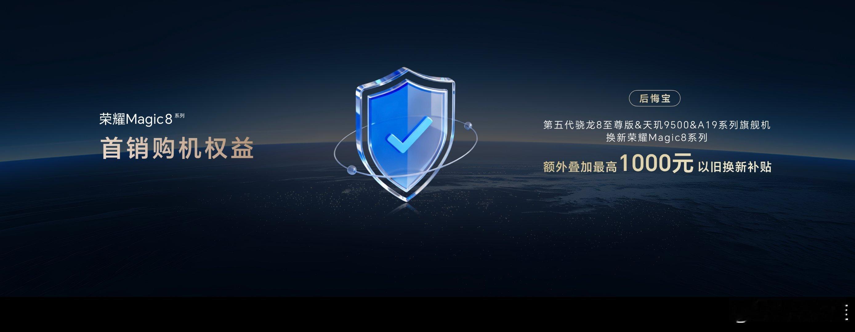 不仅有一年期碎屏宝、后盖宝等尊享权益,还为已经入手友商旗舰、但被Magic8心动到的用户推出了“后悔宝”计划——以旧换新购荣耀Magic8最高再享1000元补贴!