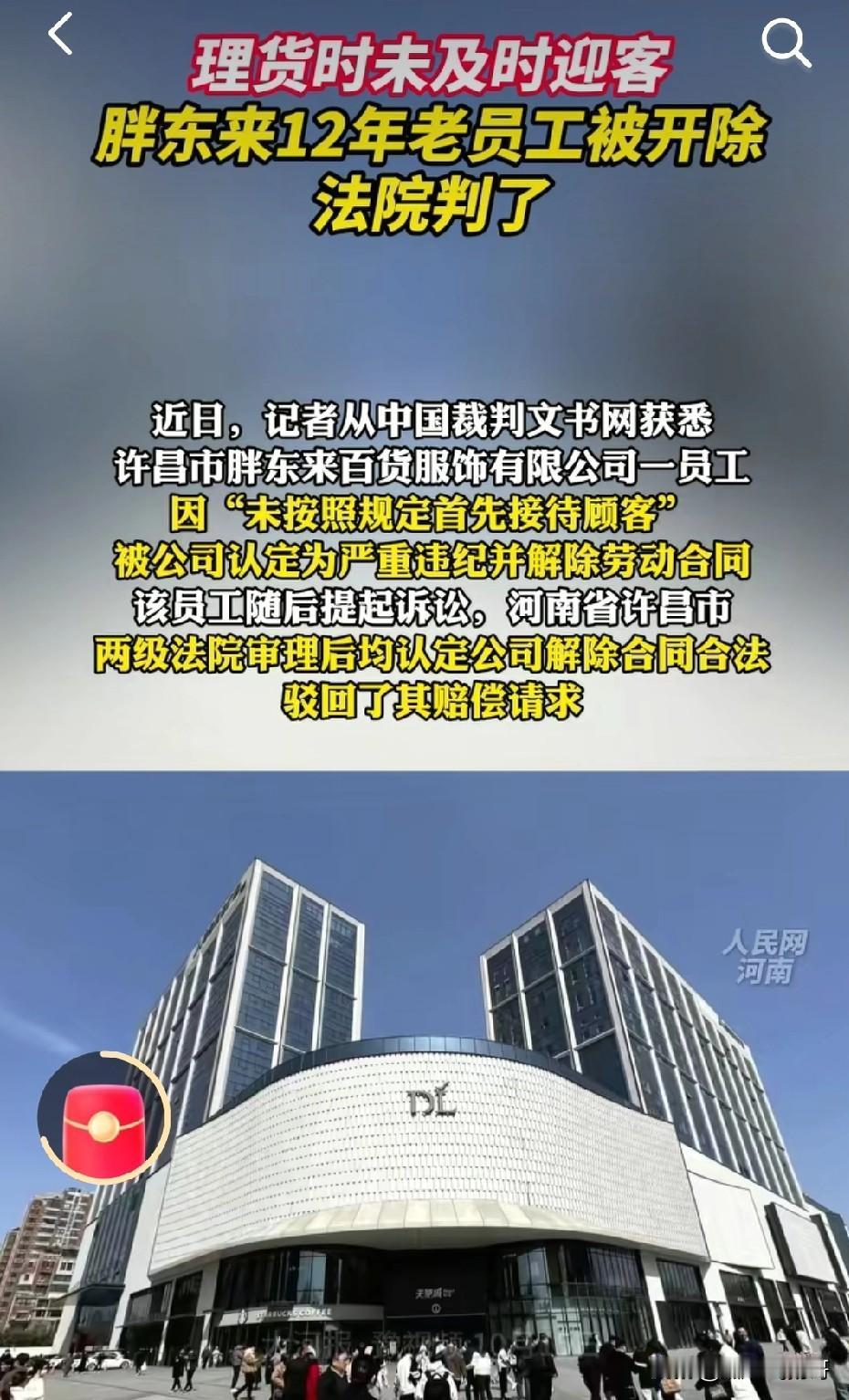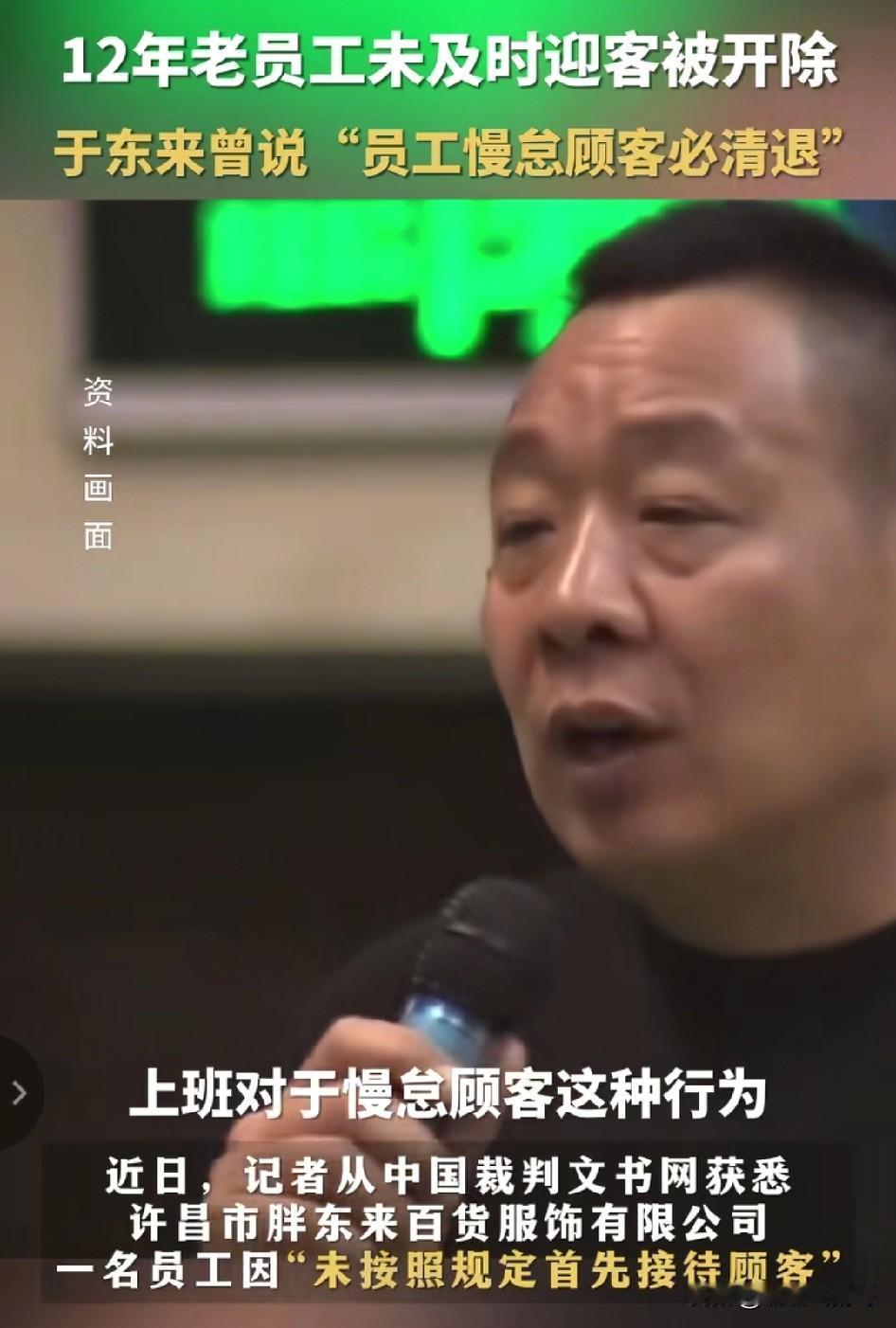 突然有些心疼胖东来的员工 , 因为胖东来要求员工对顾客哪里是当上帝看待,简直是当祖宗啊。 一个12年的老员工因为理货怠慢了顾客,结果被胖东来直接开除。 不是一年两年的员工啊,12年呐 。 谁敢说这个员工不优秀?不合格 ? 她不优秀,不合格,她也不可能在胖东来干12年。 说感情,这个员工跟胖东来怎么着也有一些感情,毕竟相处了12年啊。 可是就因为在那一段时间可能员工疏忽了一点, 老虎也有打盹的时候啊 , 12年的感情在胖东来这里化为乌有直接被开除卷铺盖走人 , 这翻脸速度没带一点犹豫的。要说感情,我认为只有顾客在胖东来那里才有感情, 而对员工并不是外界所说的感情那么好。 12年的老员工因为理货没马上接待顾客, 说什么也没错到马上开除的程度, 你教育一下,批评一下,罚点款也可以呀 ,为什么一定要直接把人家开除掉?胖东来的眼里顾客比天大 。 对员工怠慢顾客的行为,于东来说过,在胖东来, 员工怠慢顾客行为,一次也不允许, 如果发生,自己马上写辞职报告走人 ! 想来也无可厚非,顾客能给胖东来带来利益呀, 而员工是靠胖东来养家糊口 。 胖东来的工资高, 福利待遇好 , 员工也不是那么容易胜任的,因为有内部管理制度严格的管着你呢 。难怪胖东来的员工上班时间短, 不短不行呐 ,压力大啊。 对胖东来开除12年老员工, 你有什么高见,欢迎评论区聊聊 。