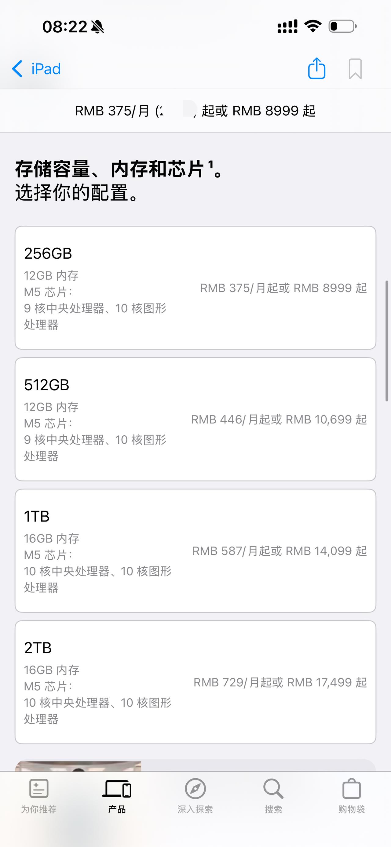 苹果悄无声息地上架M5芯片的iPad Pro,牙膏是挤牙膏,但是升级点还是有的! 1、芯片升级M5 2、起步运存升级到12GB 3、WiFi6e升级到WiFi7 4、充电功率升级到40瓦 需要注意的是,不同存储版本芯片和内存规格不同。256G、512G的是3+6的9核CPU,10核GPU,12G运存。而1T、2T版本的才是真正满血版,4+6的10核CPU,10核GPU,16G的运存[灵光一闪]这刀法不得不服库克,就是逼你买大储存版本的,1TB的直接干到1万4,真是富哥玩具啊[泣不成声]你们觉得M5的iPad Pro怎么样?准备冲嘛?