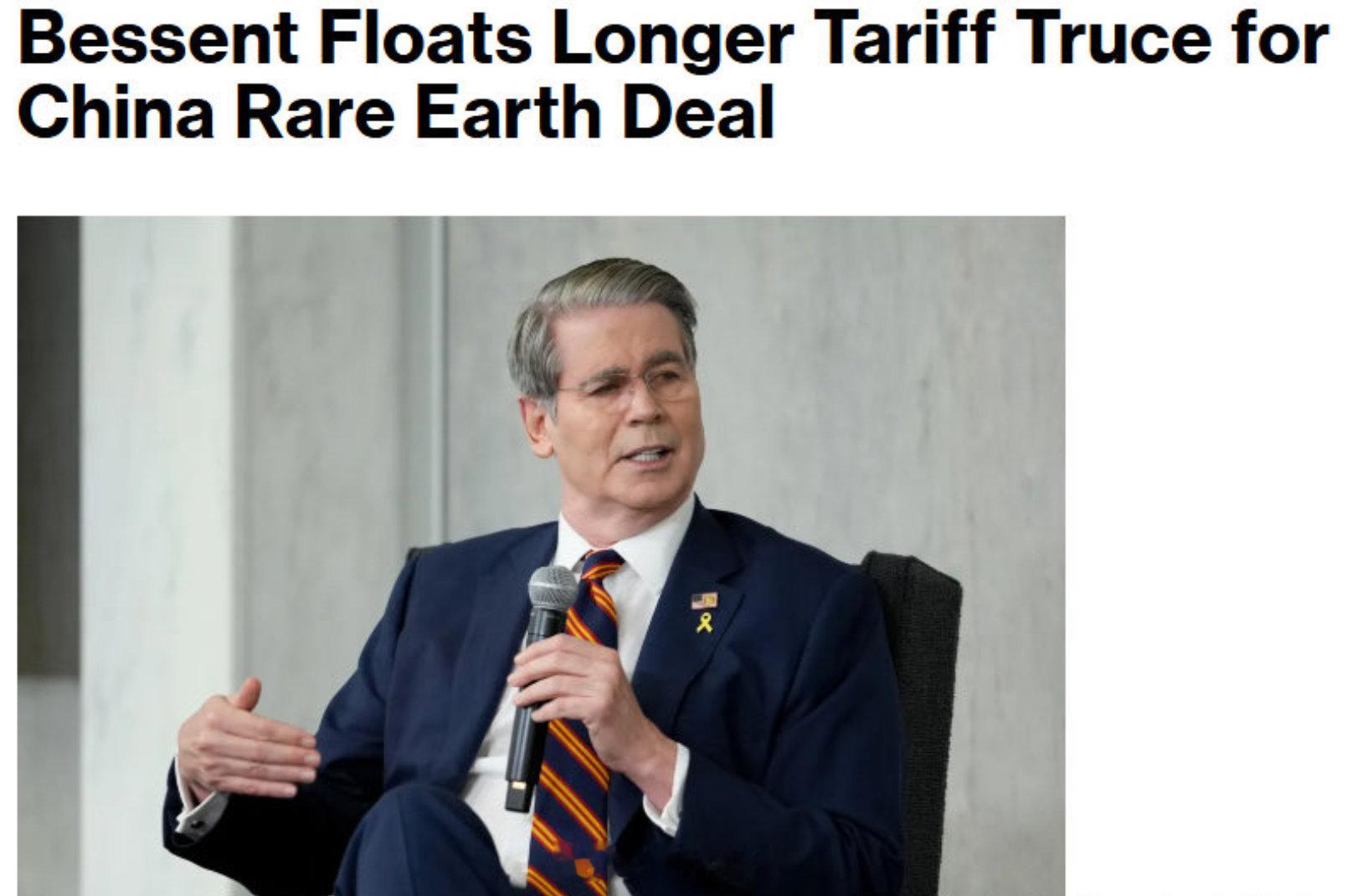 贝森特周三在记者会上表示:美国正在考虑延长对华关税暂停期,以换取中国推迟实施稀土