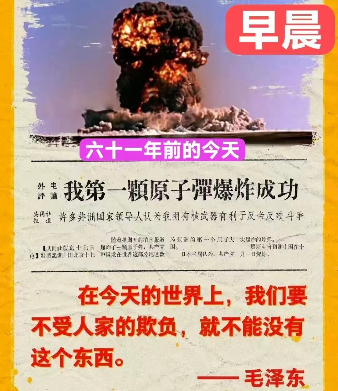 1964年10月16日,惊天动地一响,强国标志之一,六十一年了。立此存照
