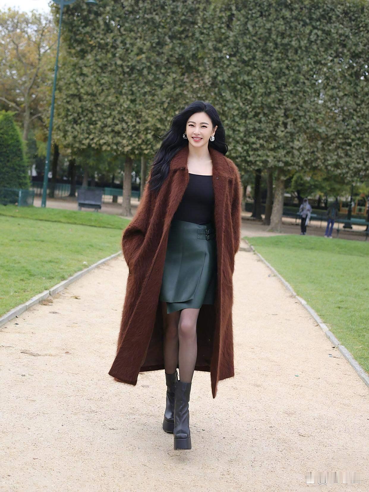 张雨绮果然不负“真尤物”称号!一件棕色毛绒大衣搭配皮裙,将洋气与高级感拿捏得死死
