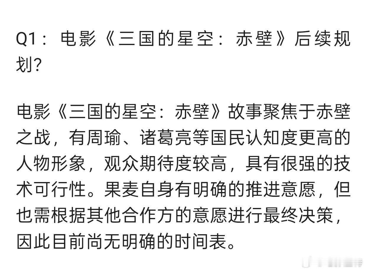 果麦文化有意愿推动《三国的星空第二部》具体要看其他合作方的意愿。