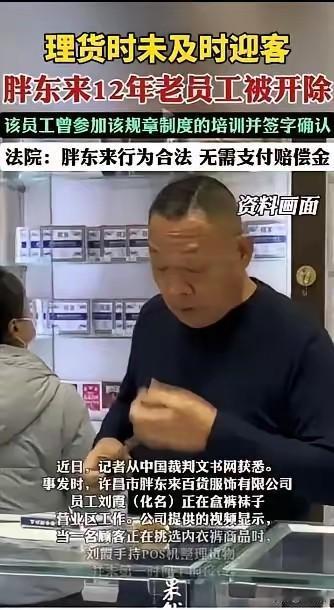 胖东来的一位做了12年老员工被开除,理由是理货时未及时迎客,公司认为该员工曾参加