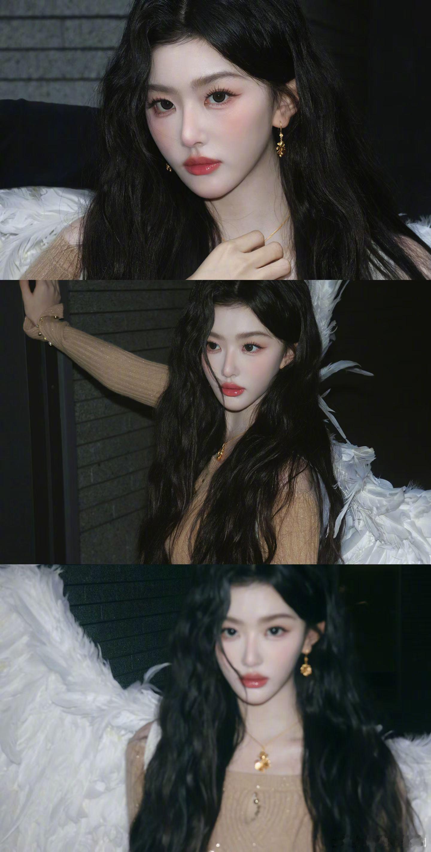 孔雪儿想象中穿一字肩的样子 谁被孔雪儿杂志造型美到?一字肩造型配长卷发,超大翅膀加持,秋日女友感拉满,像焦糖皮绒可可,漂亮到失语!