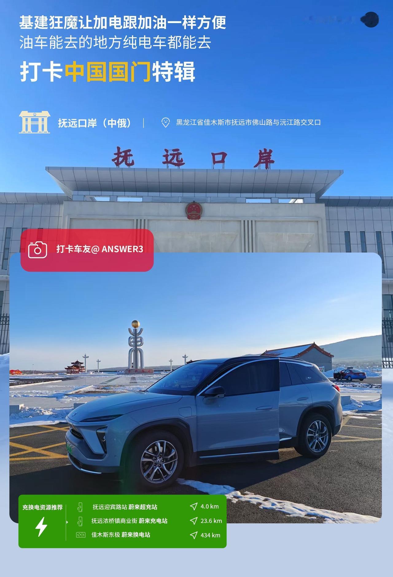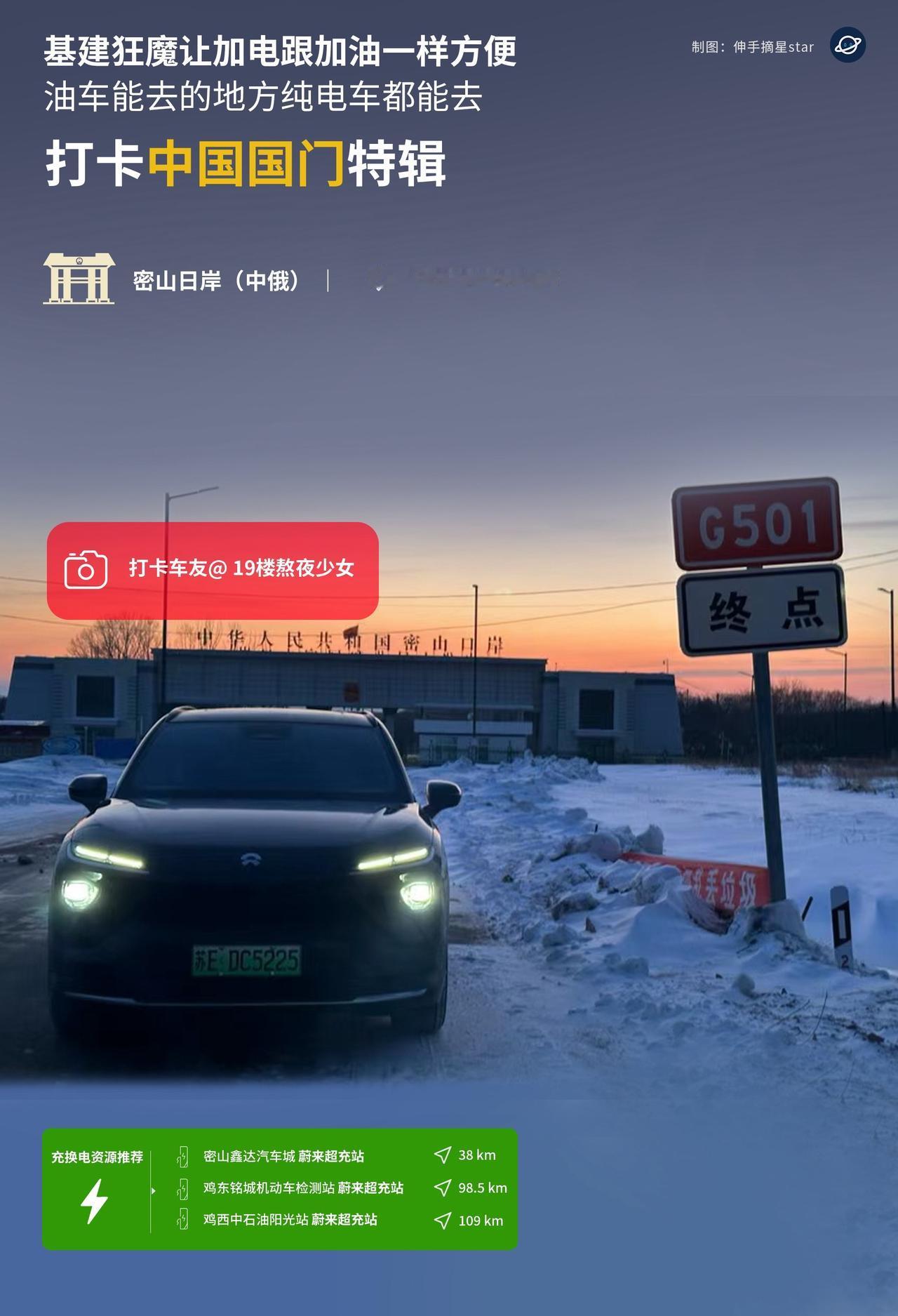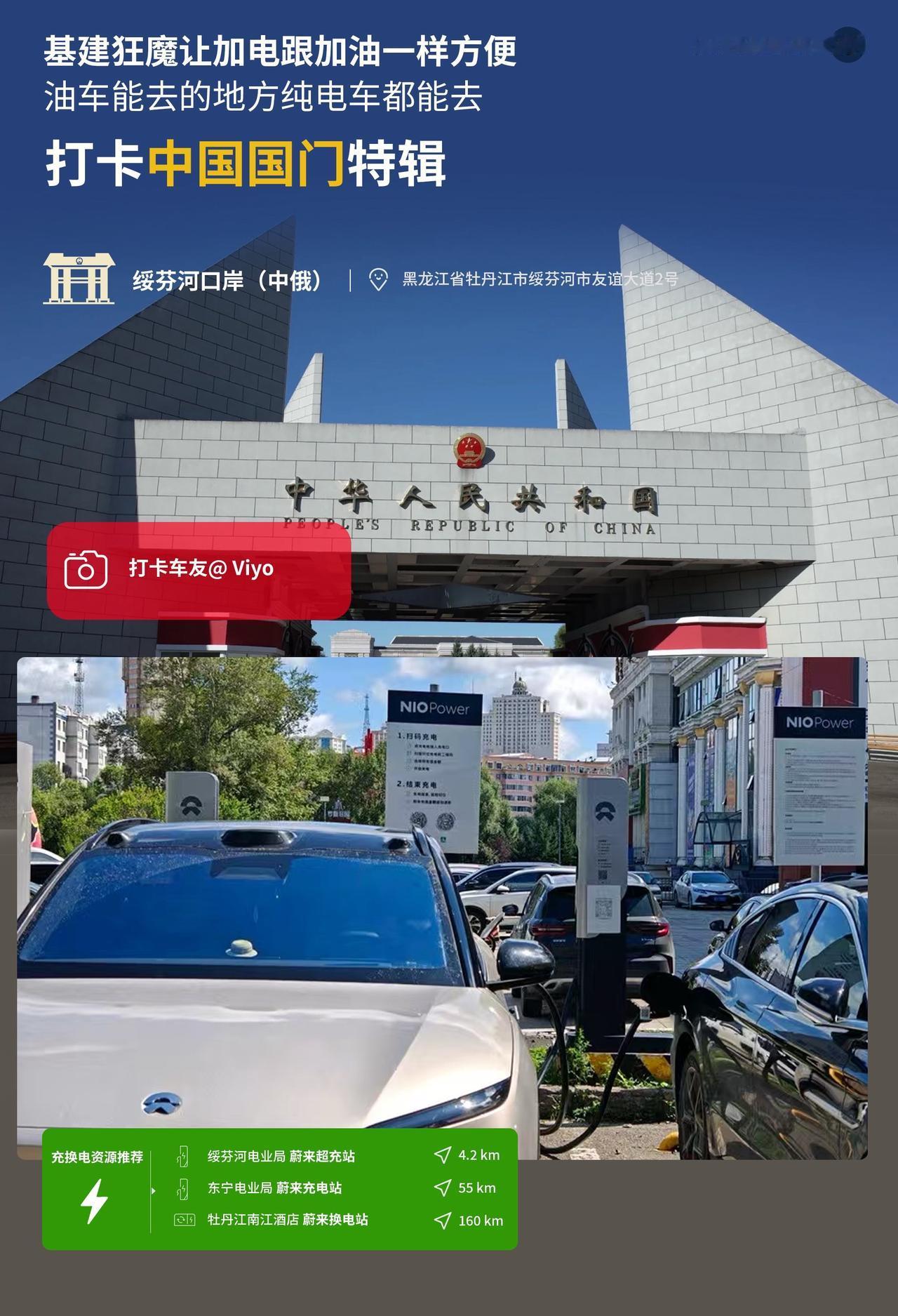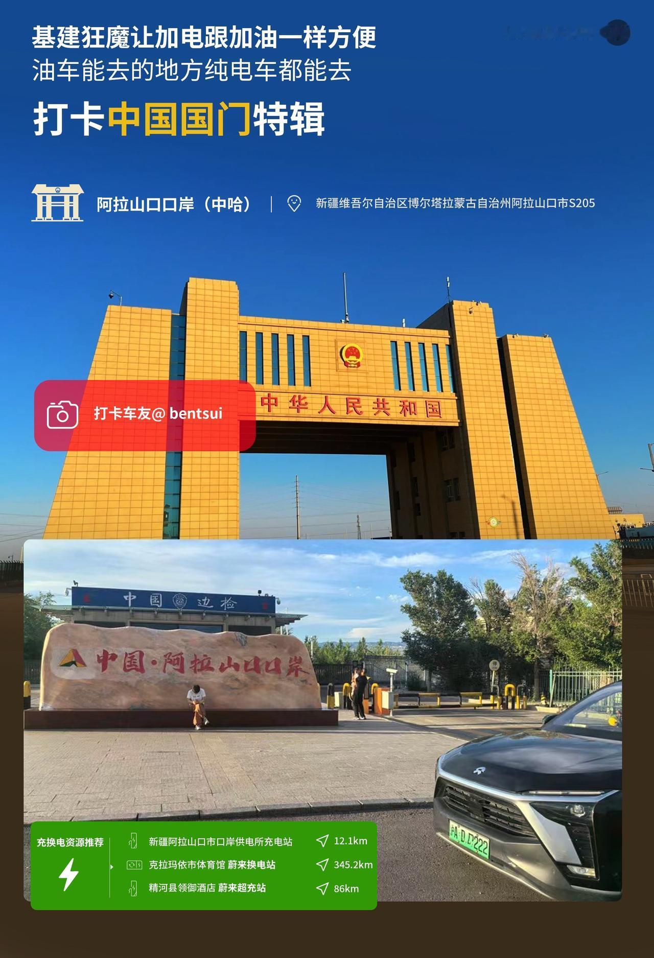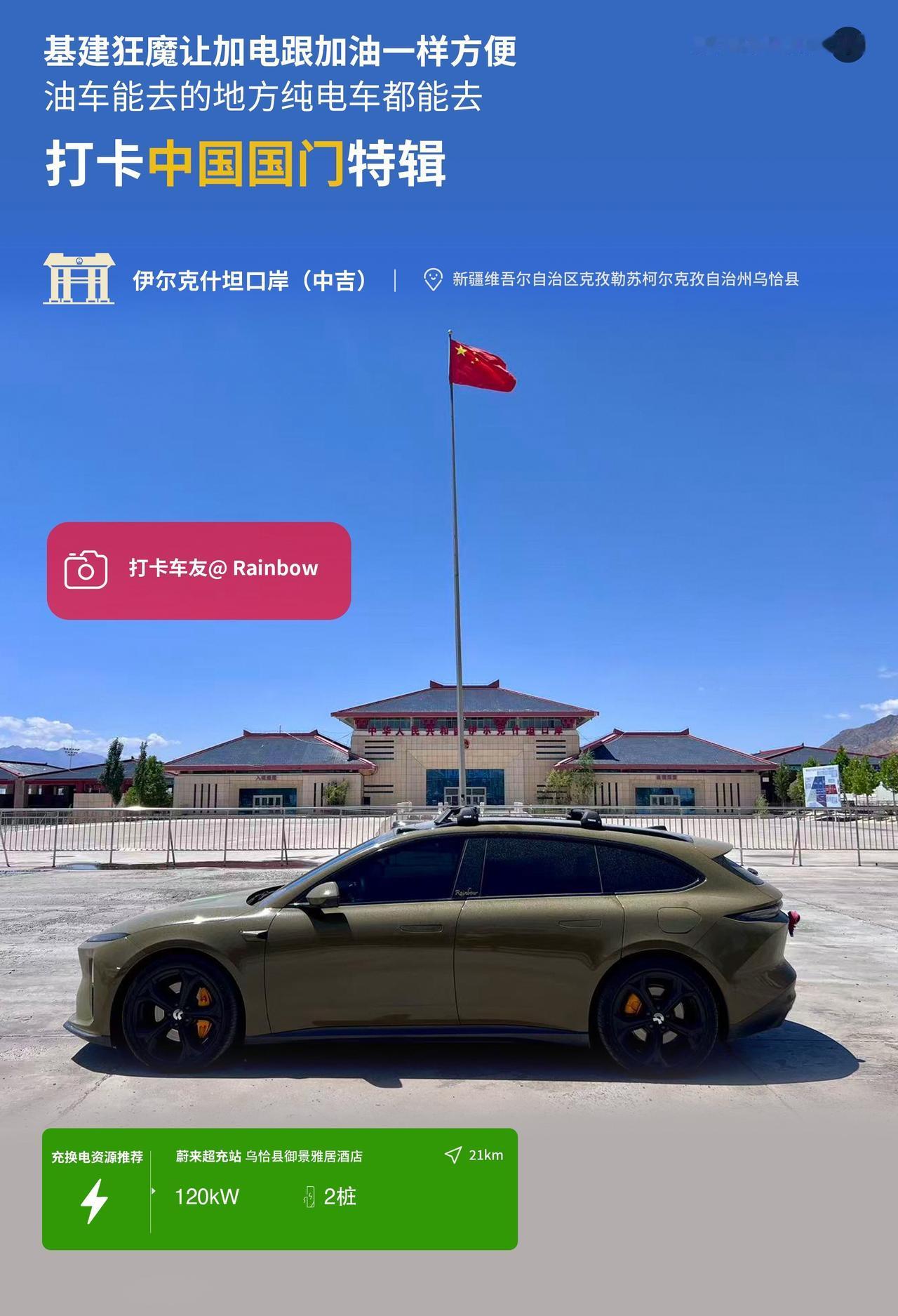牛啤,不管多偏远的地方,都能遇到蔚来!油车能去的地方,纯电车也能抵达! 蔚来车主打卡中国国门! 自驾游 电车 新能源汽车 基建狂魔