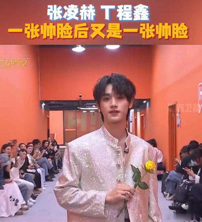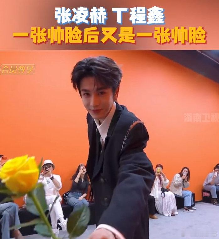 张凌赫丁程鑫一张帅脸后又是一张帅脸谁懂啊!张凌赫的黄玫瑰经工作人员一递到丁程鑫那