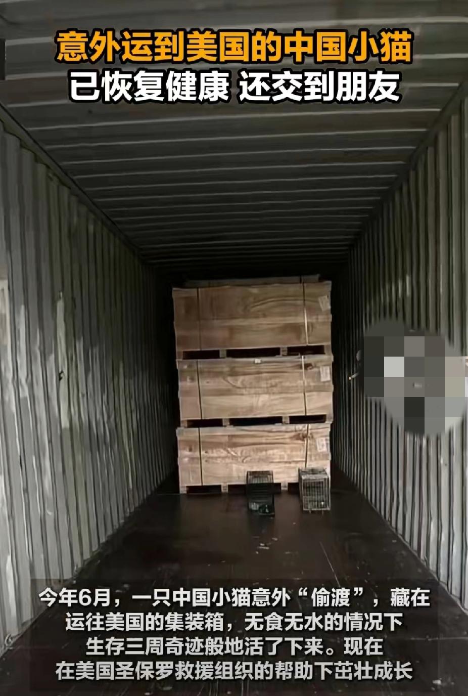 中国小猫"偷渡"美国21天不死!靠喝冷凝水续命,网友:这猫比我还强 谁能想到?一只中国小猫没办签证没买机票,硬生生靠"藏箱绝技"完成了跨太平洋旅行,还成了中美网友都心疼的网红! 这小家伙不知咋钻进了发往美国的集装箱,一待就是三周,全程没吃没喝。等美国工人发现它时,瘦得只剩一把骨头,脱水脱到快睁不开眼,却硬是没断气——后来大家猜,它八成是靠啃箱子里的小老鼠、舔壁上的冷凝水活下来的,简直是猫界"生存大师"! 现在小猫已经在寄养家庭养得白白胖胖,之前怯生生躲角落的样子全没了,每天追着逗猫棒跑,美国救助站还在给它征名,LeMao、Moxie这些名字都快把评论区刷爆了。不得不说,这生命力也太顽强了,果然"中华小猫咪"名不虚传! 咱养宠人最懂这种揪心又感动的滋味,毛孩子就算遇到天大的坎都能扛过去,这股劲儿真该学一学。而且不管是中国还是美国的救助者,都在为这小生命忙活,这不就是最暖的"跨国爱宠接力"嘛! 你们说这猫该叫啥名字最贴切?叫"太平洋"还是"偷渡侠"?家里毛孩子有过啥让人惊叹的求生瞬间?评论区聊聊,看看谁家主子更有"小强体质"!它经济太香了 宠物界的生存奇迹