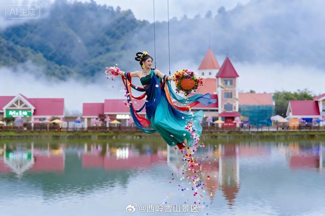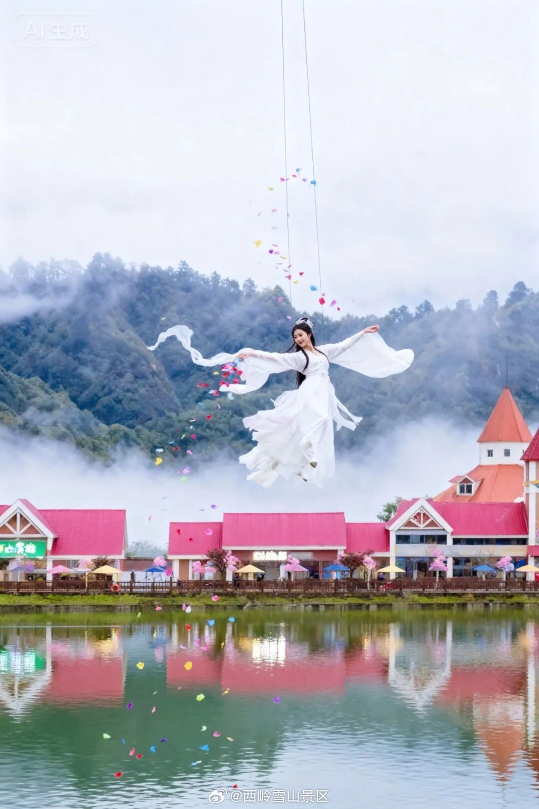 ✅ 不同于城市低空威亚,这里将飞行路线与雪山、湖泊、森林、云海立体交织,7-8分钟穿越“窗含西岭千秋雪”的国风画卷!