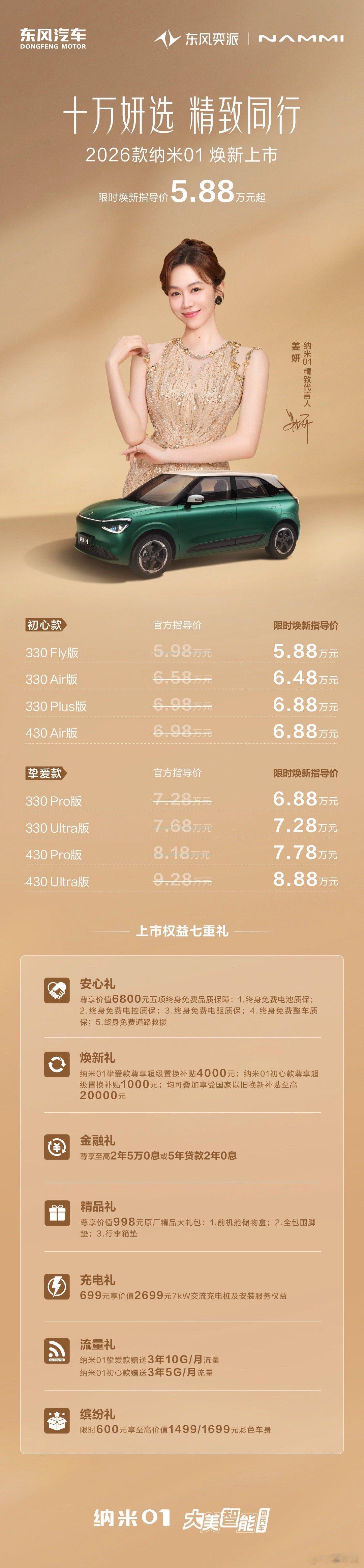 新车关注2026款东风奕派纳米01来了,限时焕新指导价5.88万元起