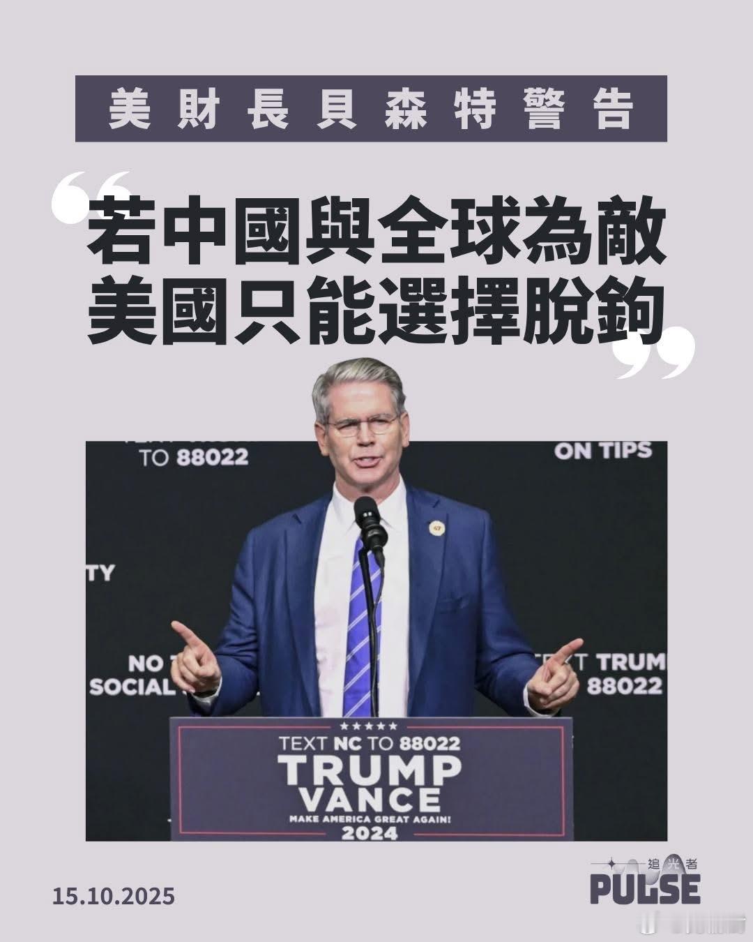 贝森特强调,美国须用产业政策对抗中国非市场经济,若中国与全球为敌,美国只能选择脱钩。贝森特提出延长关税暂停,换取中国延后稀土限制,呼吁欧洲、印度加入美国联盟。同时乐观认为透过对话可缓解,但警告中国出口限制将扼杀半导体及电动车产业。