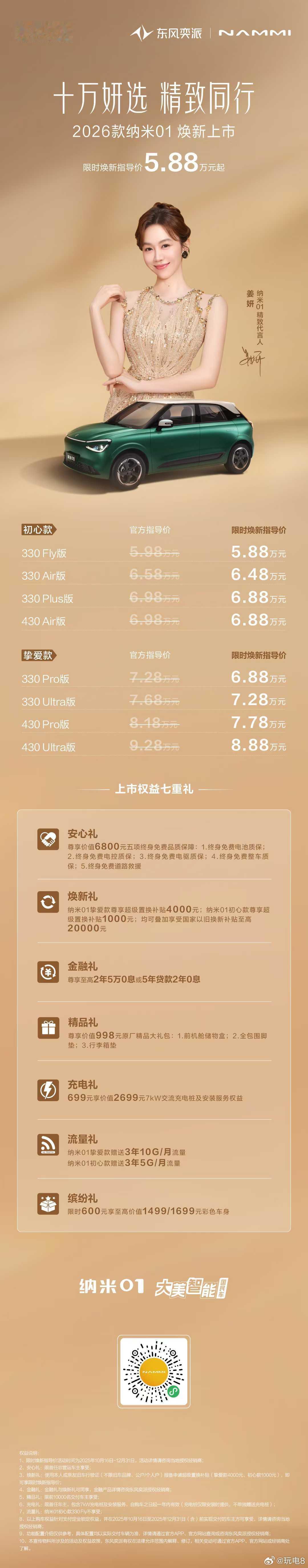 【2026 款东风奕派纳米 01 ,限时 5.88 万起携 280 余项升级而来】