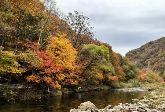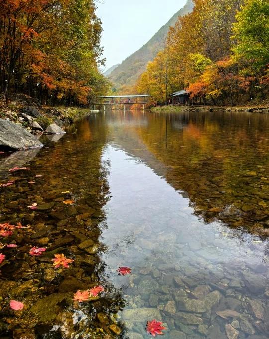 本溪三道湾赏枫 来本溪第三天,天气不好,没有阳光,果断不去热门景区,开车来了三道湾,惊喜发现沿途景色很美。游人不多,双车道的公路边上沿着河两边就是枫树。现在红、黄叶期正盛,浅溪红树流水飘叶,随手一拍都是大片。强烈推荐!又到登山赏红叶的好时节 红枫 枫叶 丹东