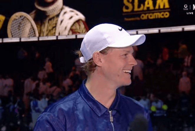 虎扑10月17日讯沙特六王大满贯网球表演赛半决赛,辛纳2-0战胜德约科维奇,与阿尔卡拉斯连续两年会师决赛。赛后,辛纳接受了现场采访。