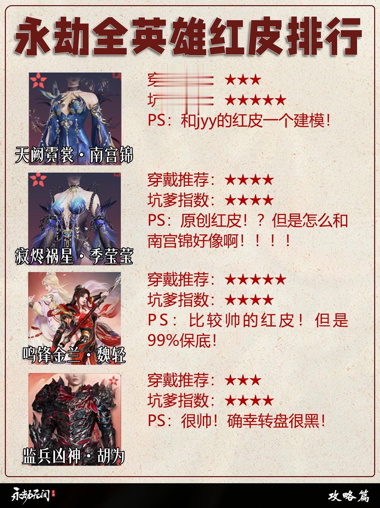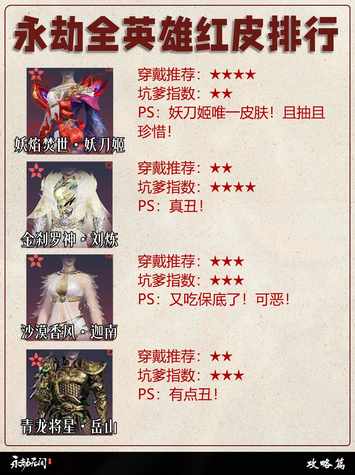 永劫全英雄红皮排行。