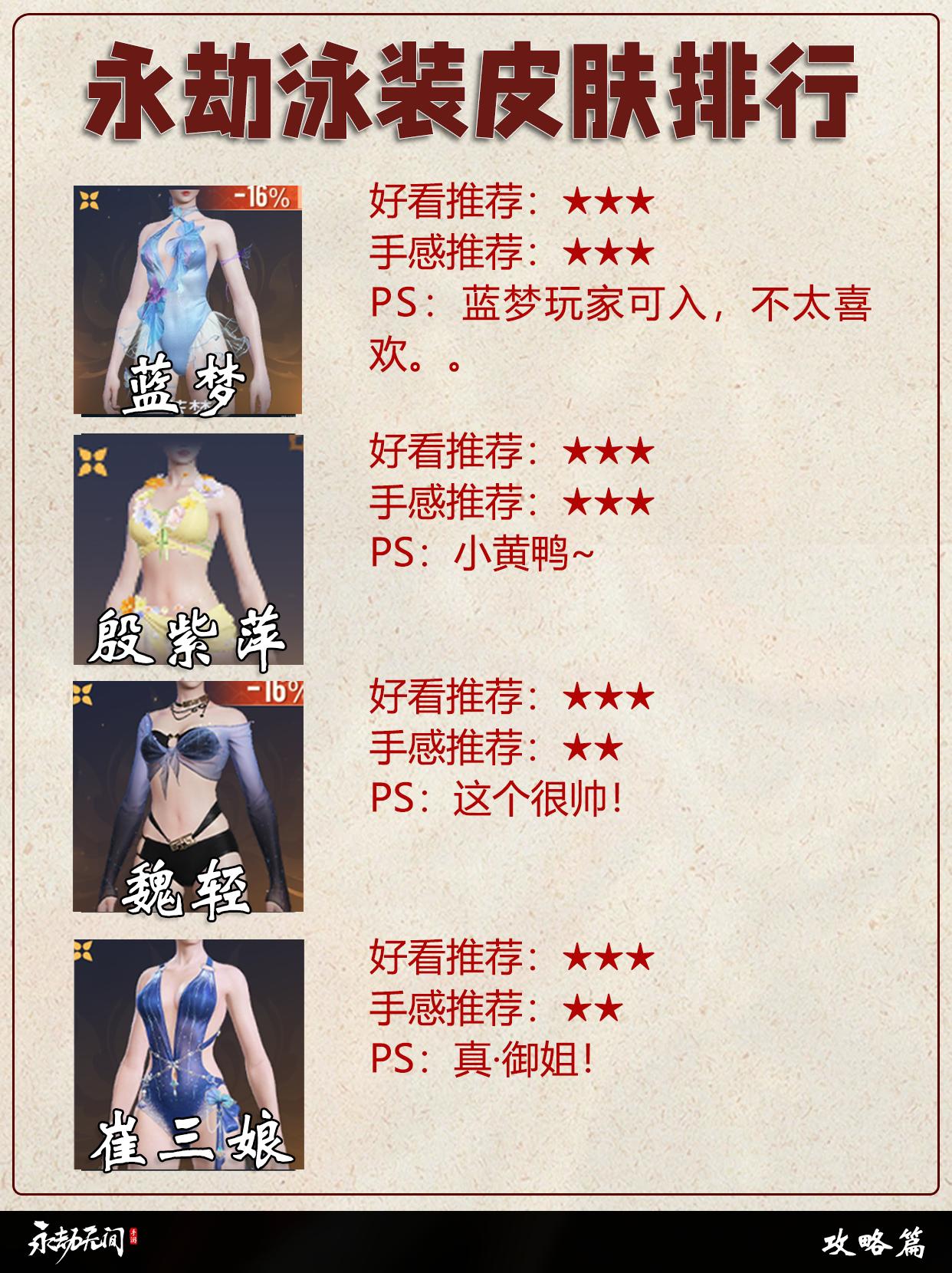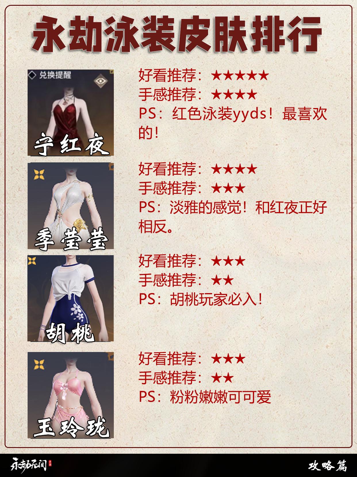 永劫泳装皮肤排行。