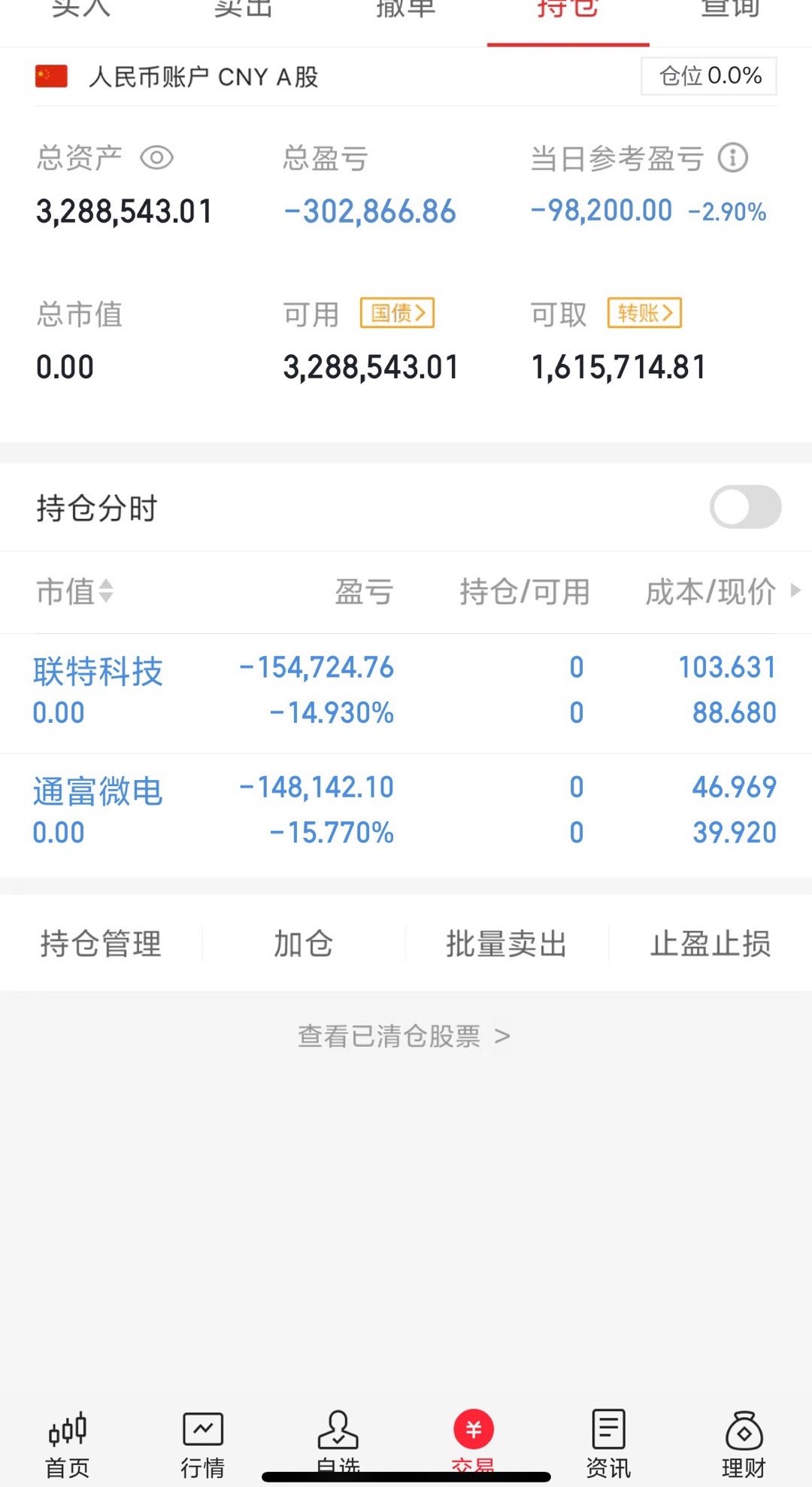 各位道友,今天我割肉了。我的账户连续血亏,共亏几十多个,让相信我的粉丝们失望了,我多的不说,我只能向你们说一声抱歉。你们可以来骂我,可以来批评我,我都能接受。因为我没有避风港,也没有后台,风再大,雨再狂,我都要自己扛,不要忘记给我点赞评论!