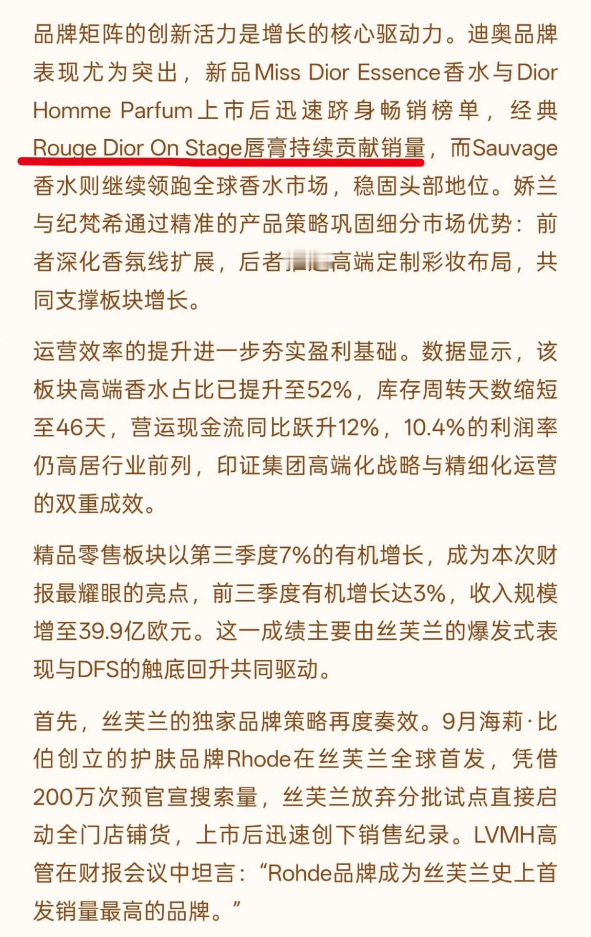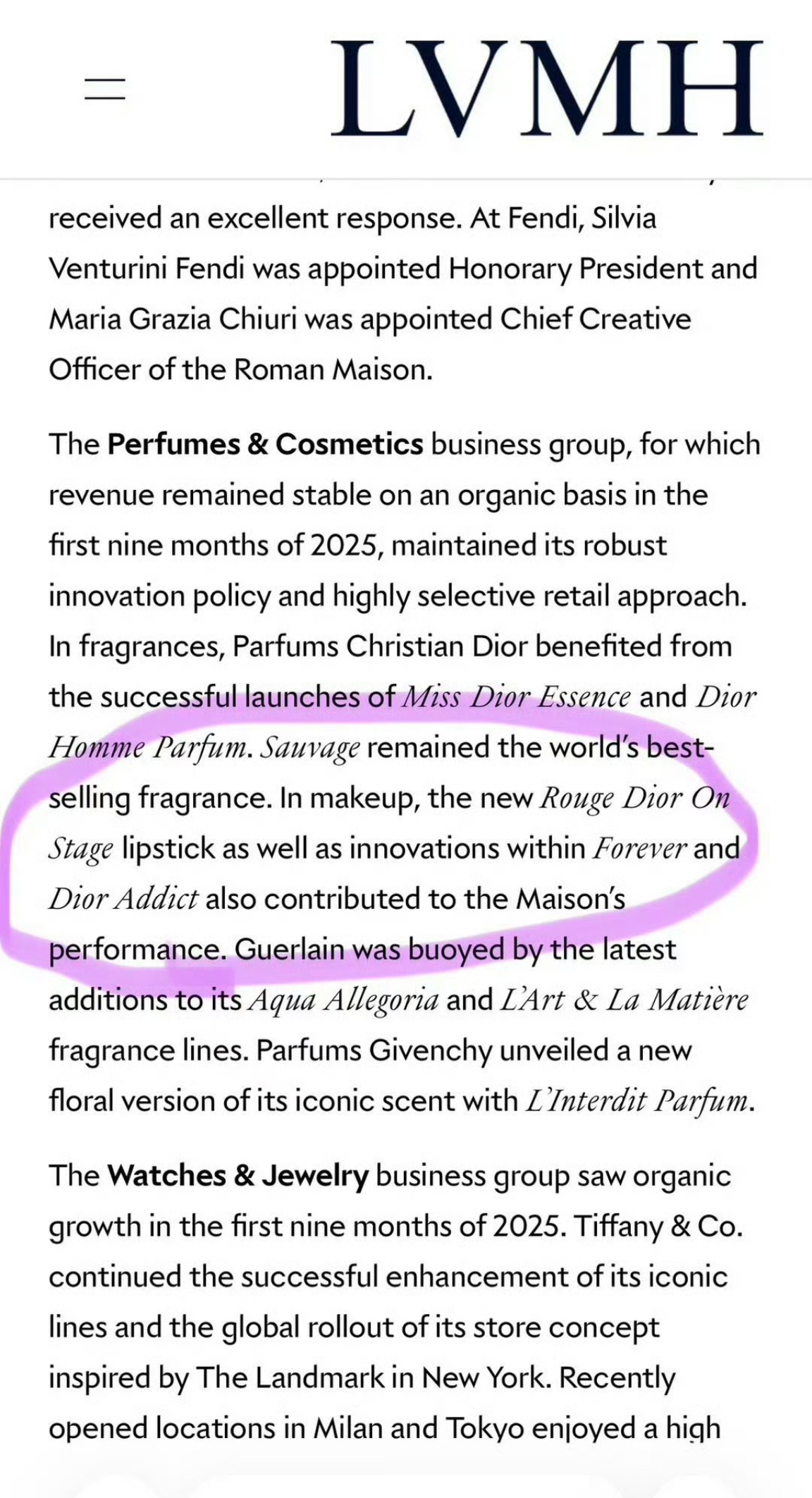 邓为的加持让财报更加靓丽!LVMH发布2025年第三季度,财报显示中国大陆在三季度恢复增长,其中Dior表现尤为突出。Dior全球美妆大使邓为正是今年第三季度官宣,其带货的“专属”色号226唇膏也成为超级爆款。