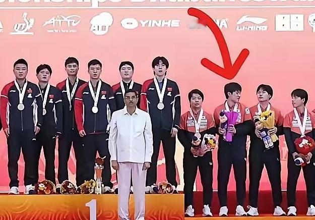 大家有没有注意到张本智和在2025年印度亚锦赛男团颁奖仪式上上的表现,在升国旗、
