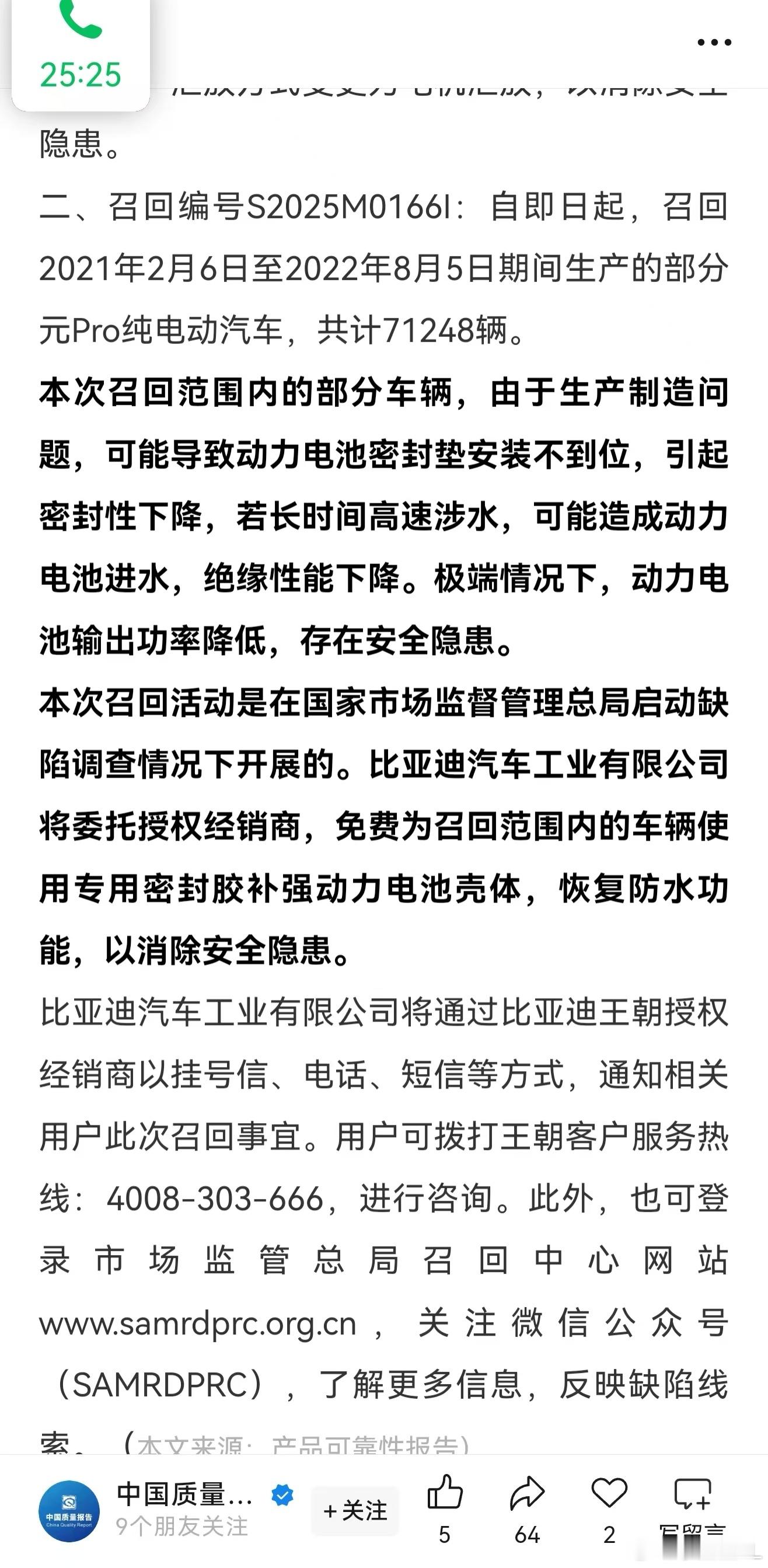 比亚迪召回唐和元系列的部分车型。中国质量报告为什么对元Pro那一部分还加粗提醒了