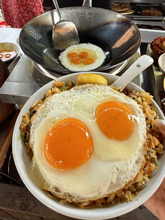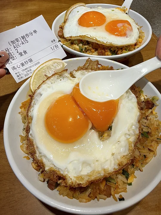 师傅炒的时候就一整个香晕了!每碗炒饭上都有两个流心蛋🍳蛋液裹满每一粒米饭~好好吃谁懂!!