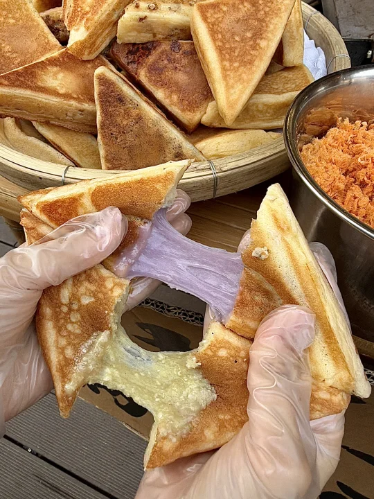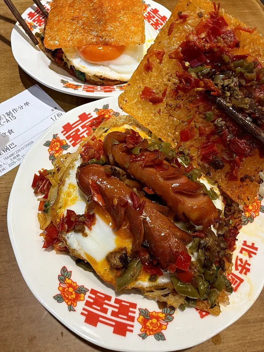 酥脆锅巴里面是满满土豆丝🥔、淀粉肠、流心蛋…口感层次jujuju丰富!!